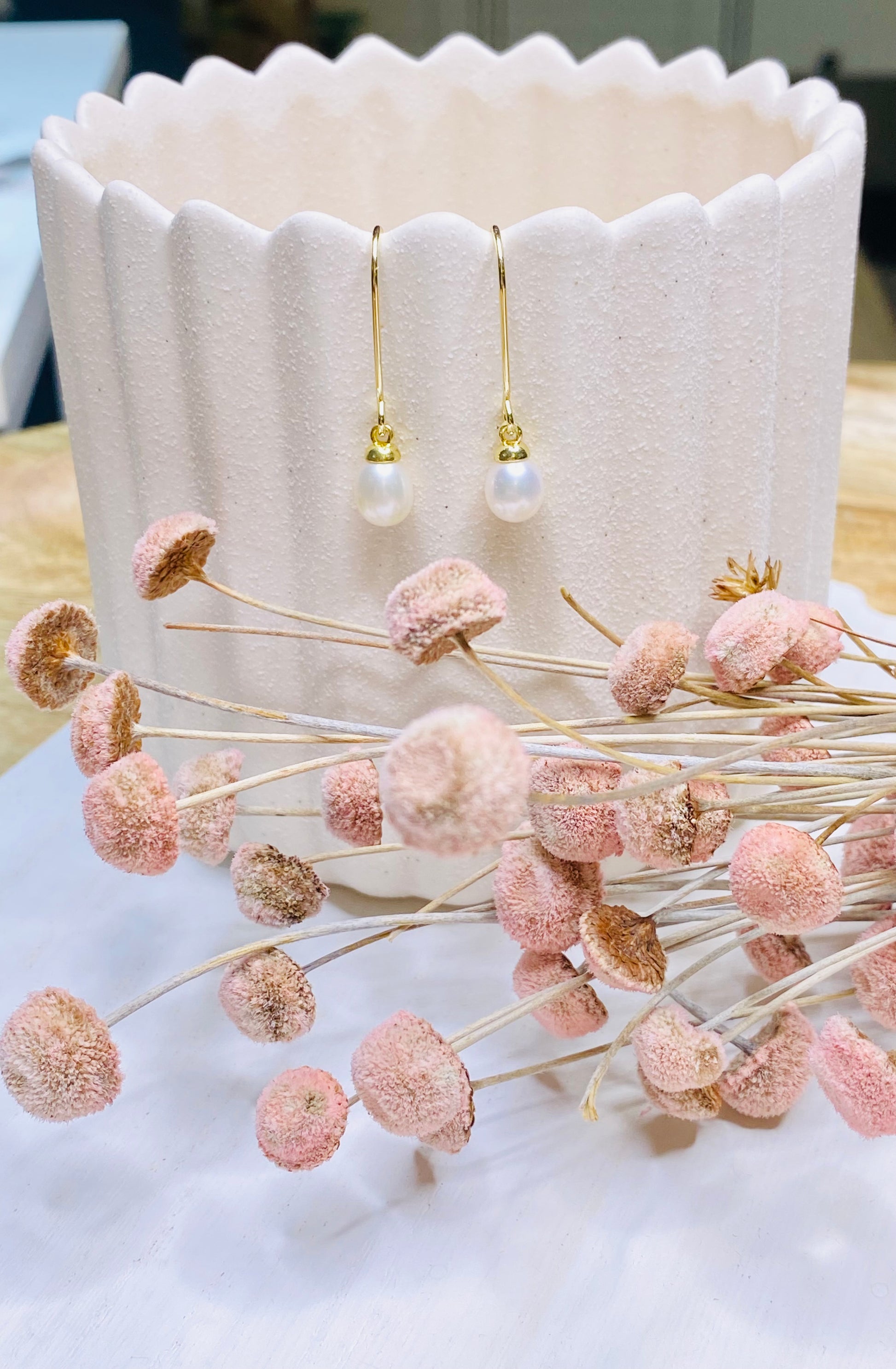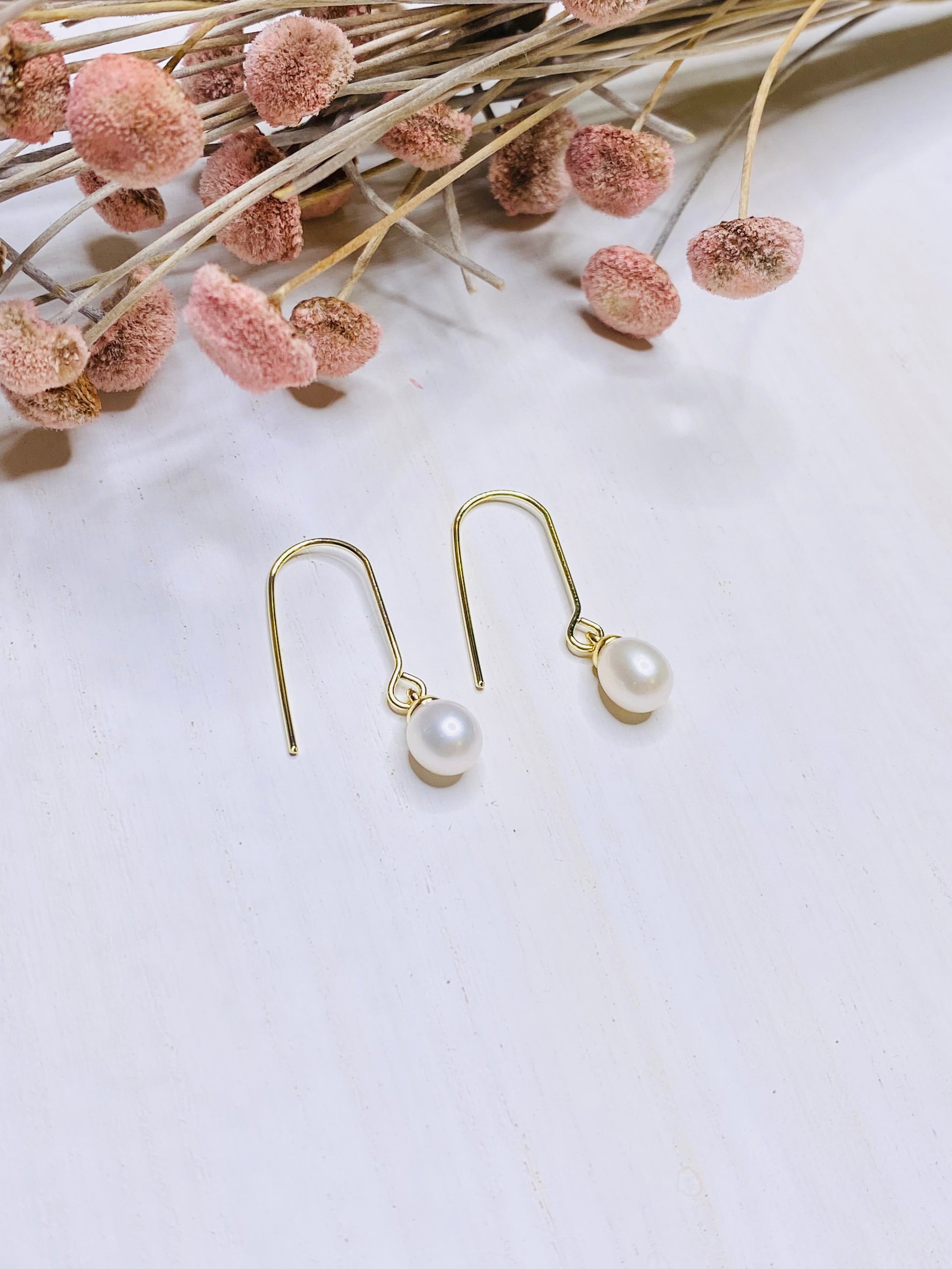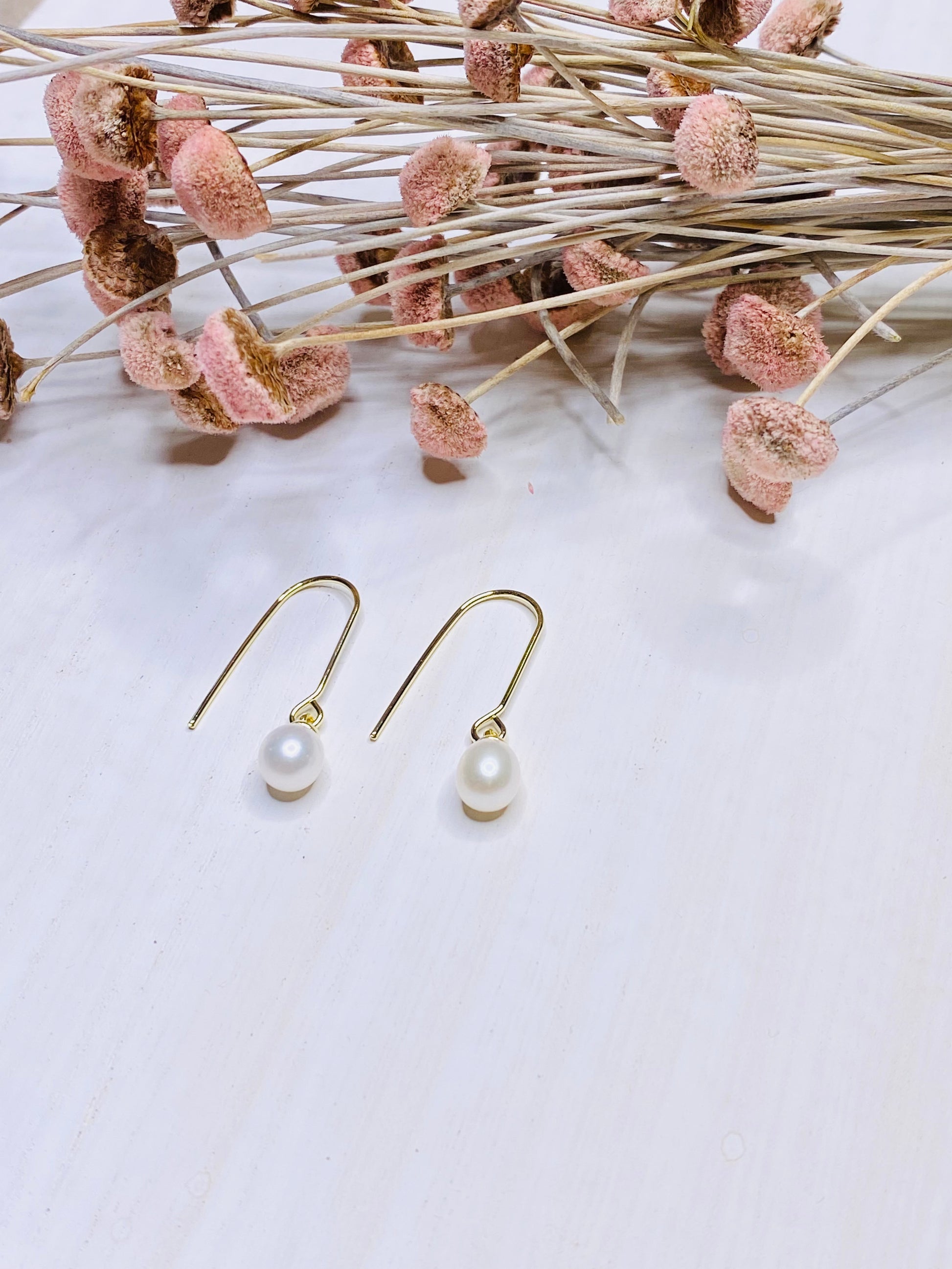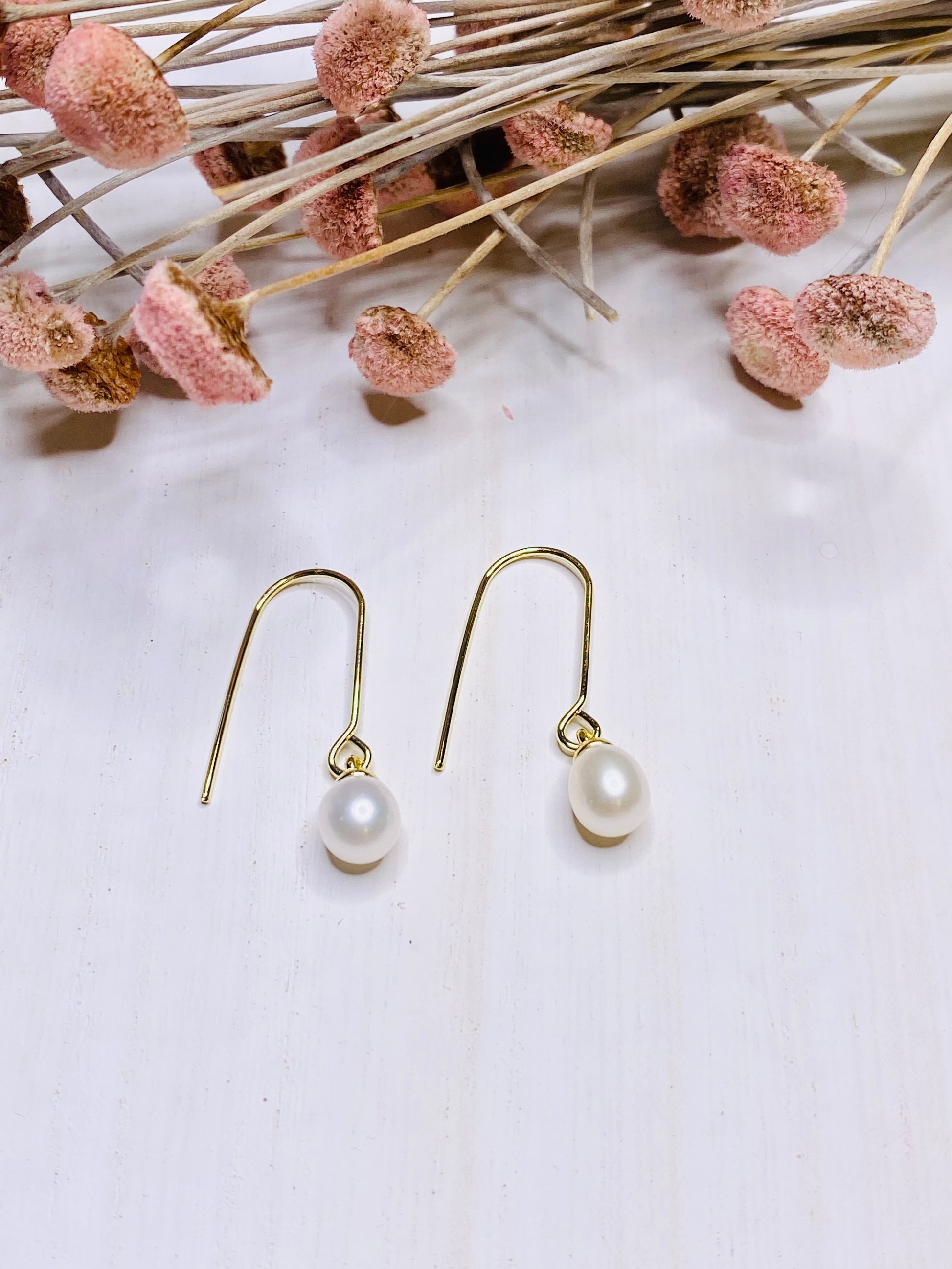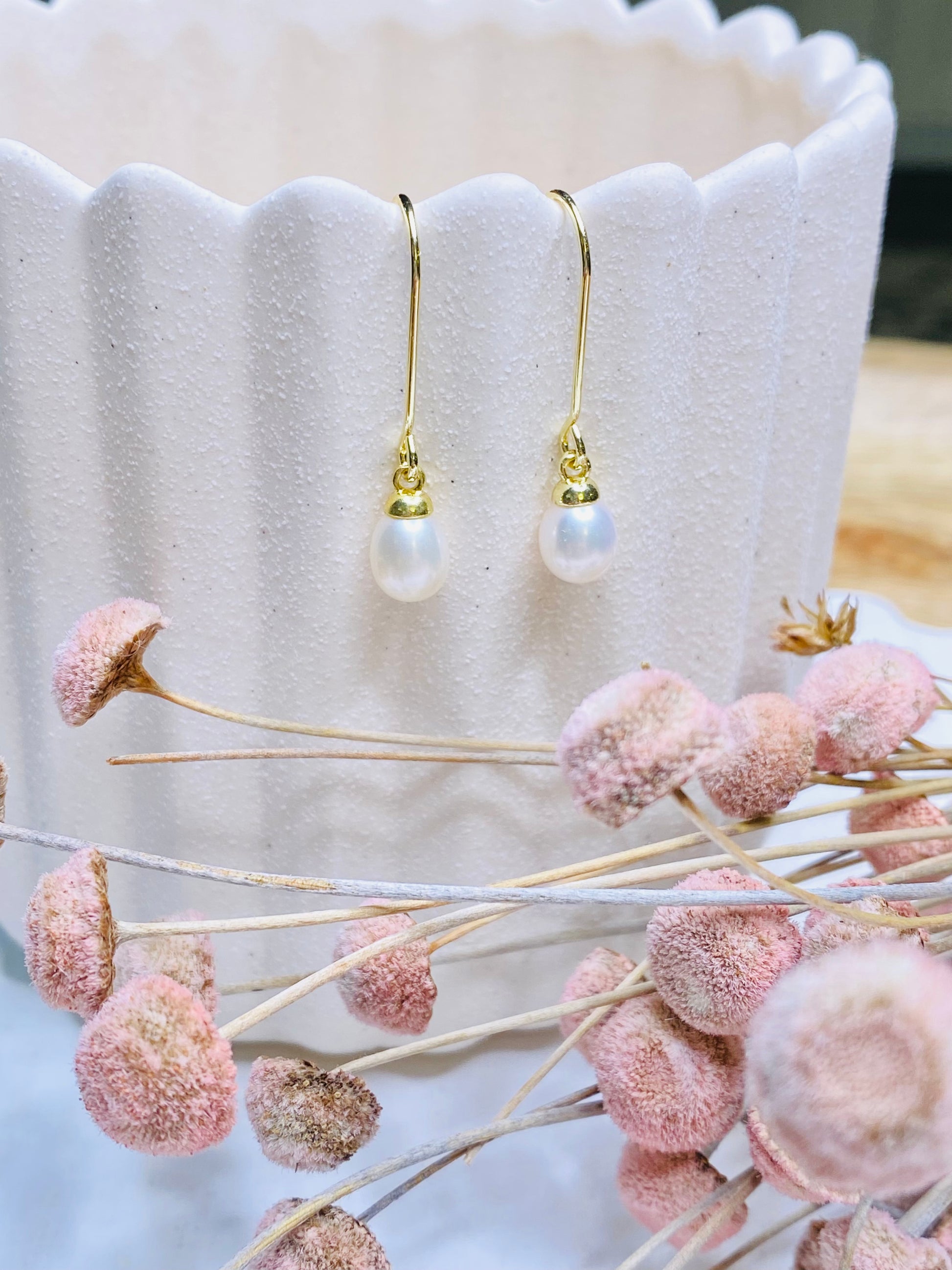 Elegant oval pearl pendant, 18k gold plated drop earring wire