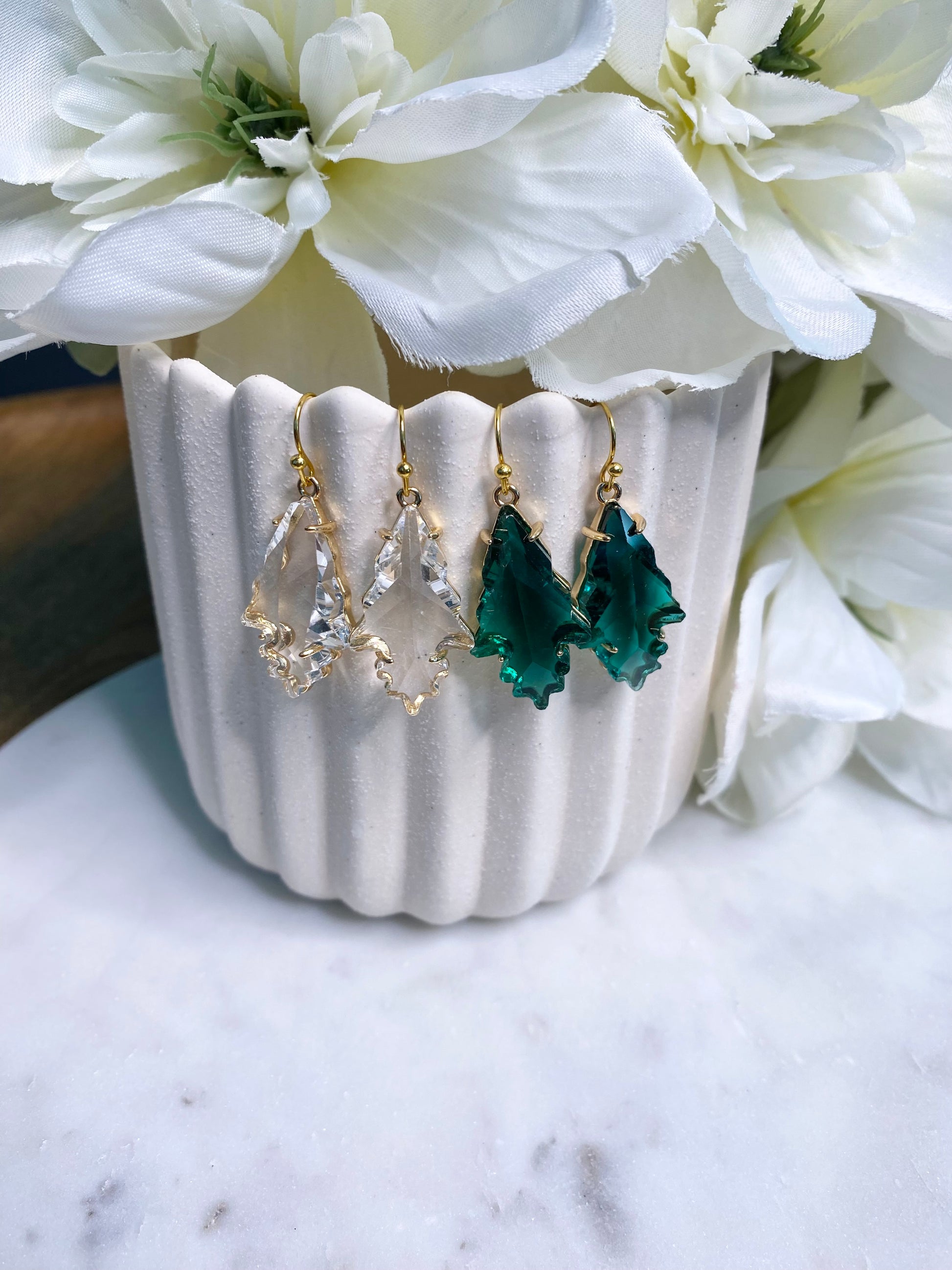 - Gemstone: Clear Leaf Crystal Glass Encased in Brass