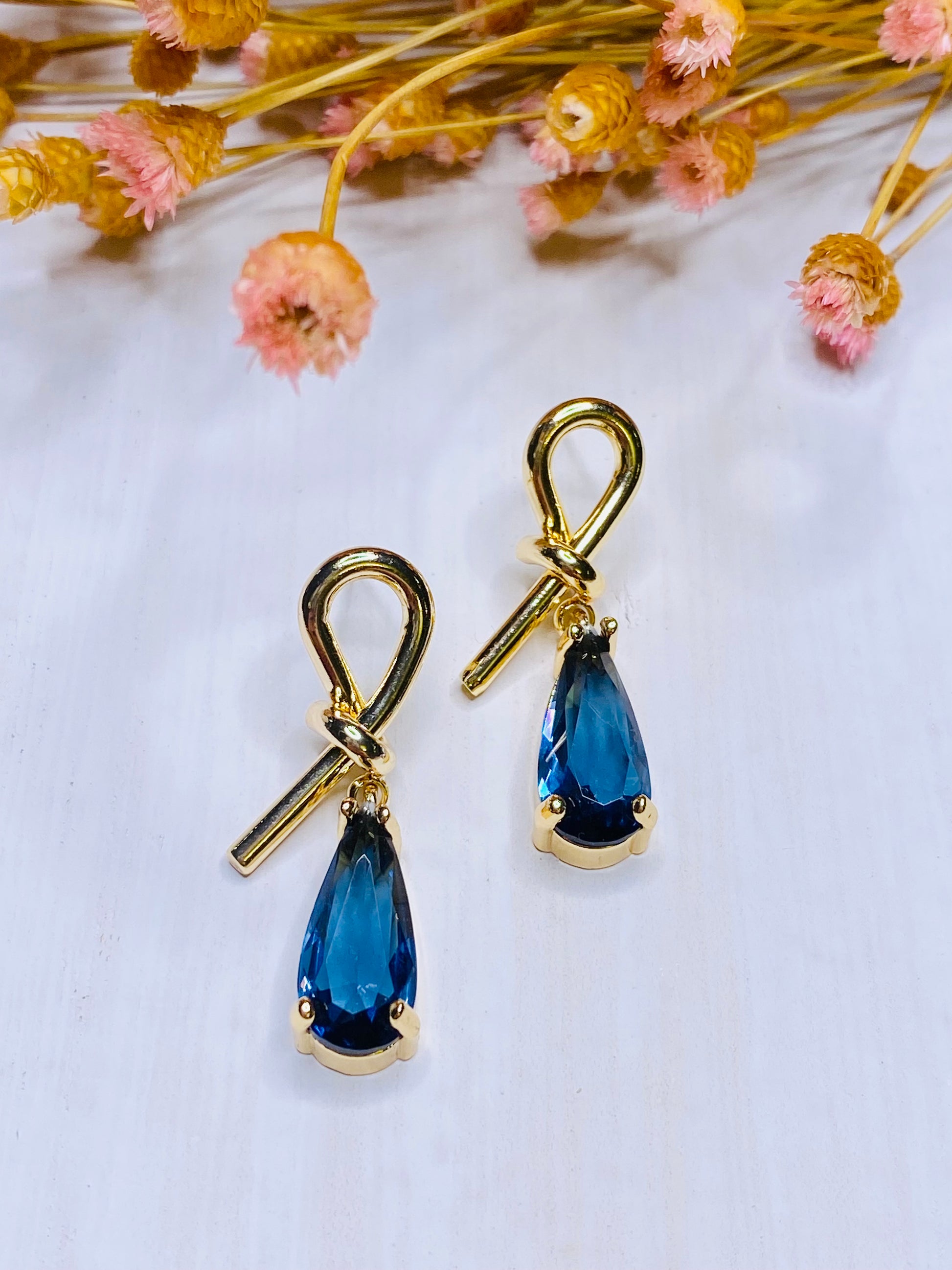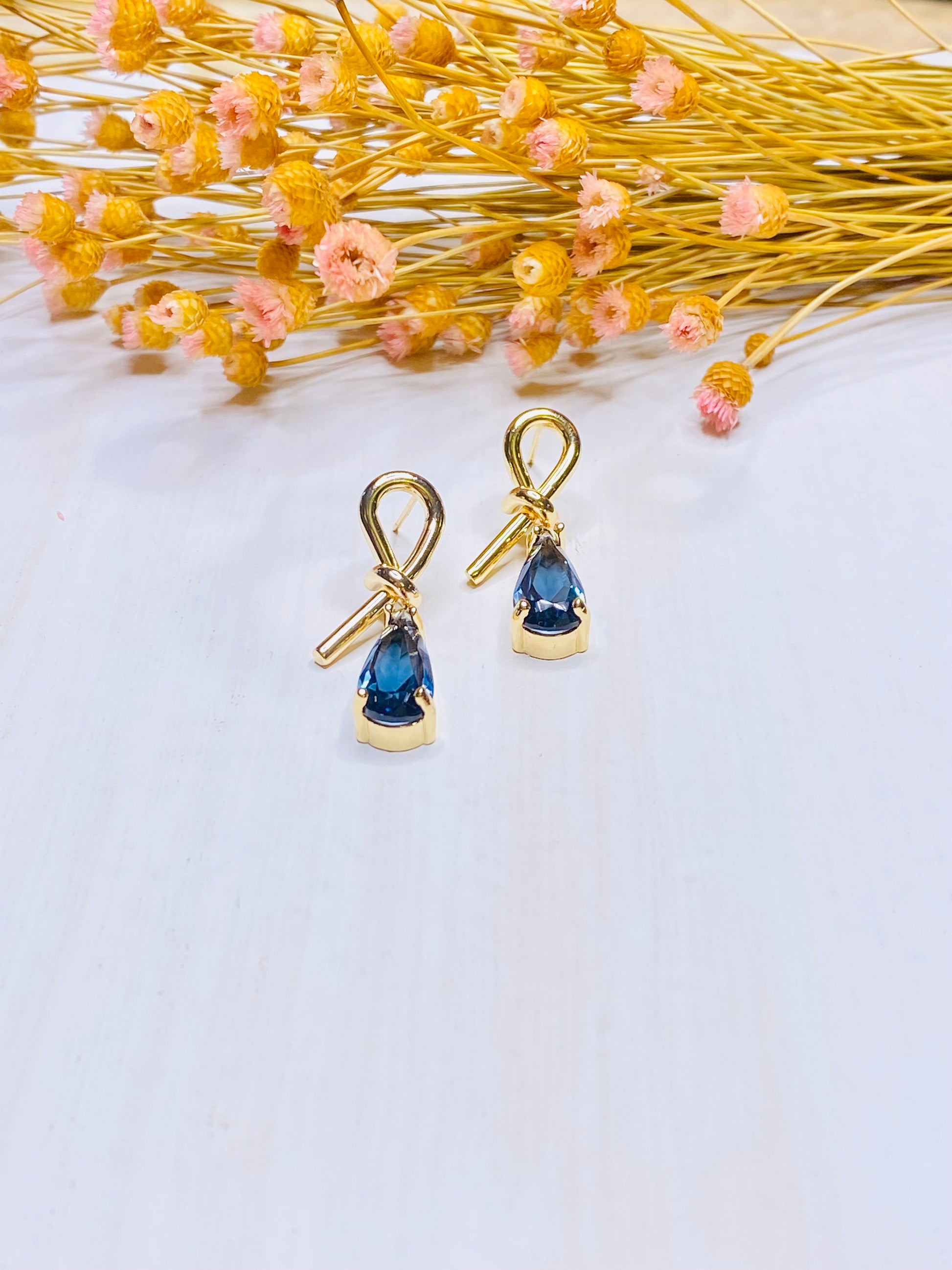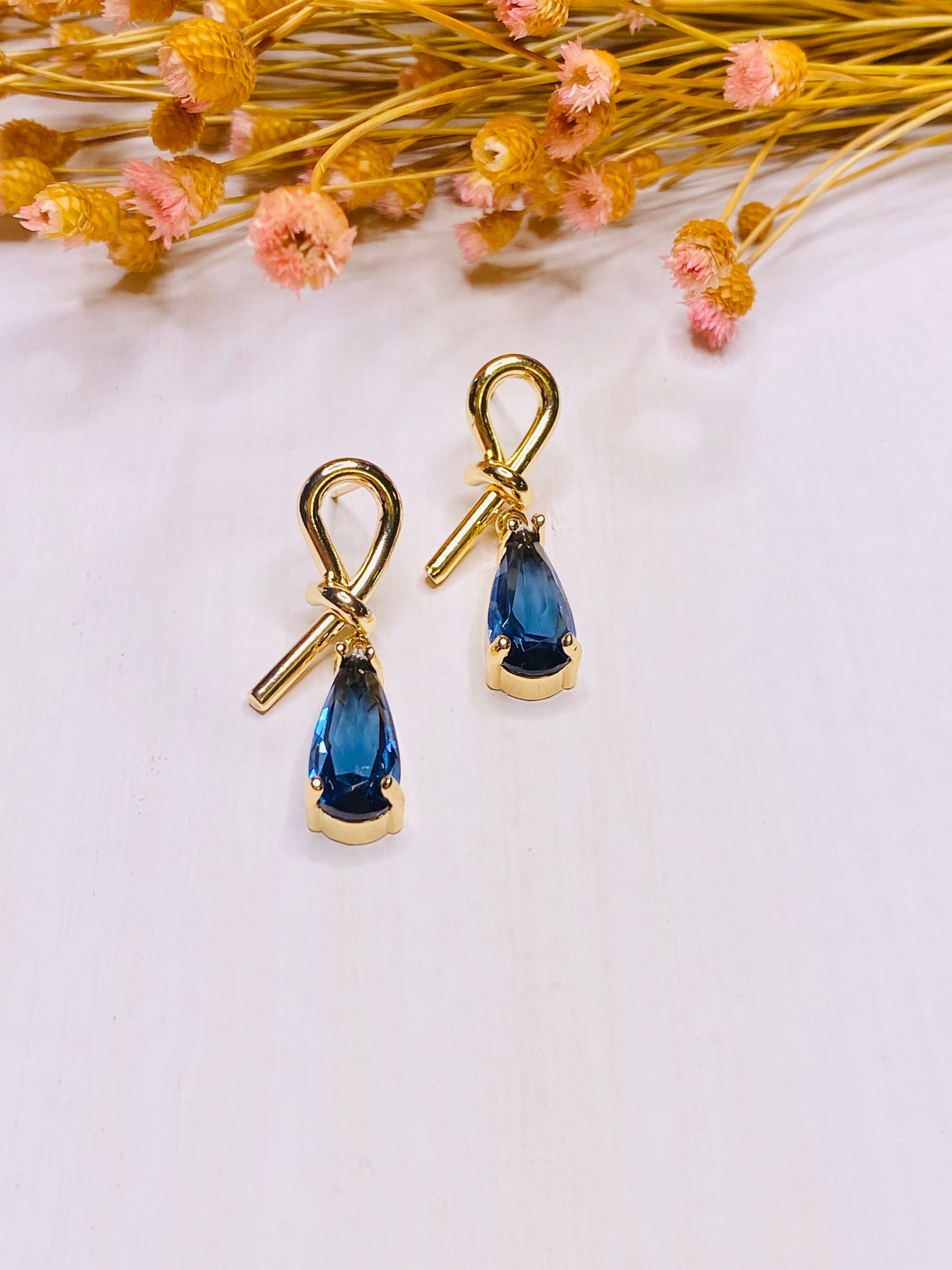 18k real gold plated studs, deep blue teardrop zircon gemstone pendant