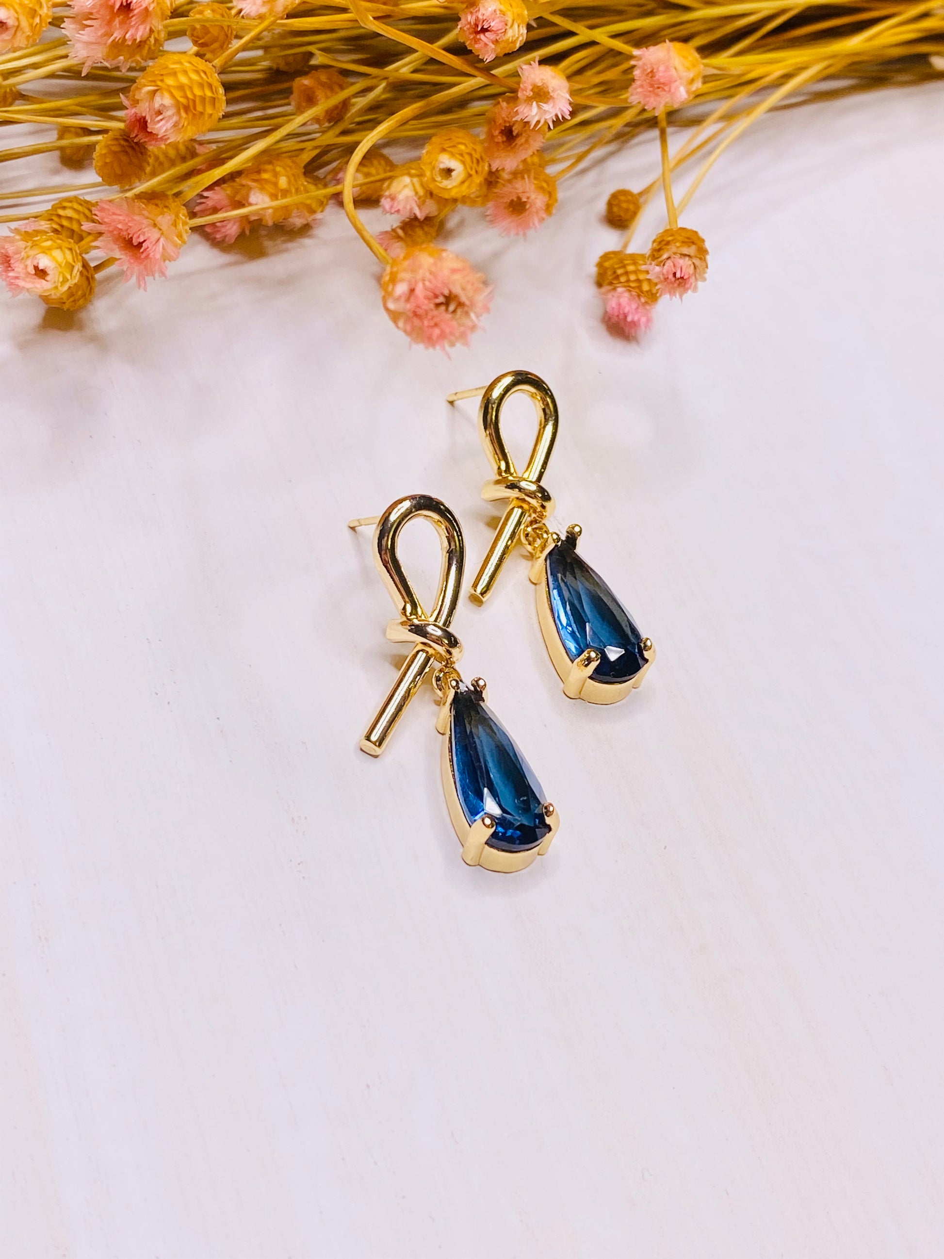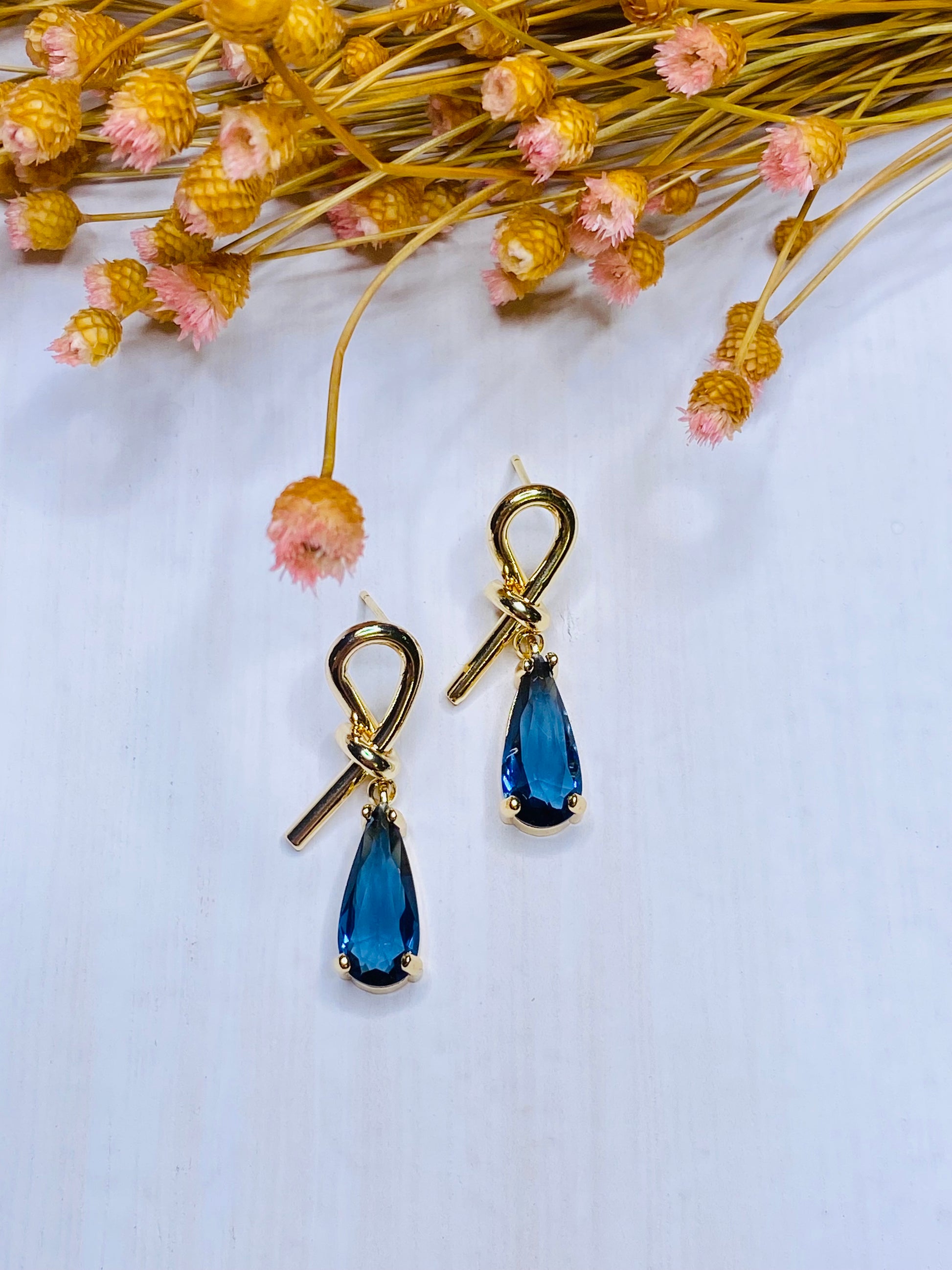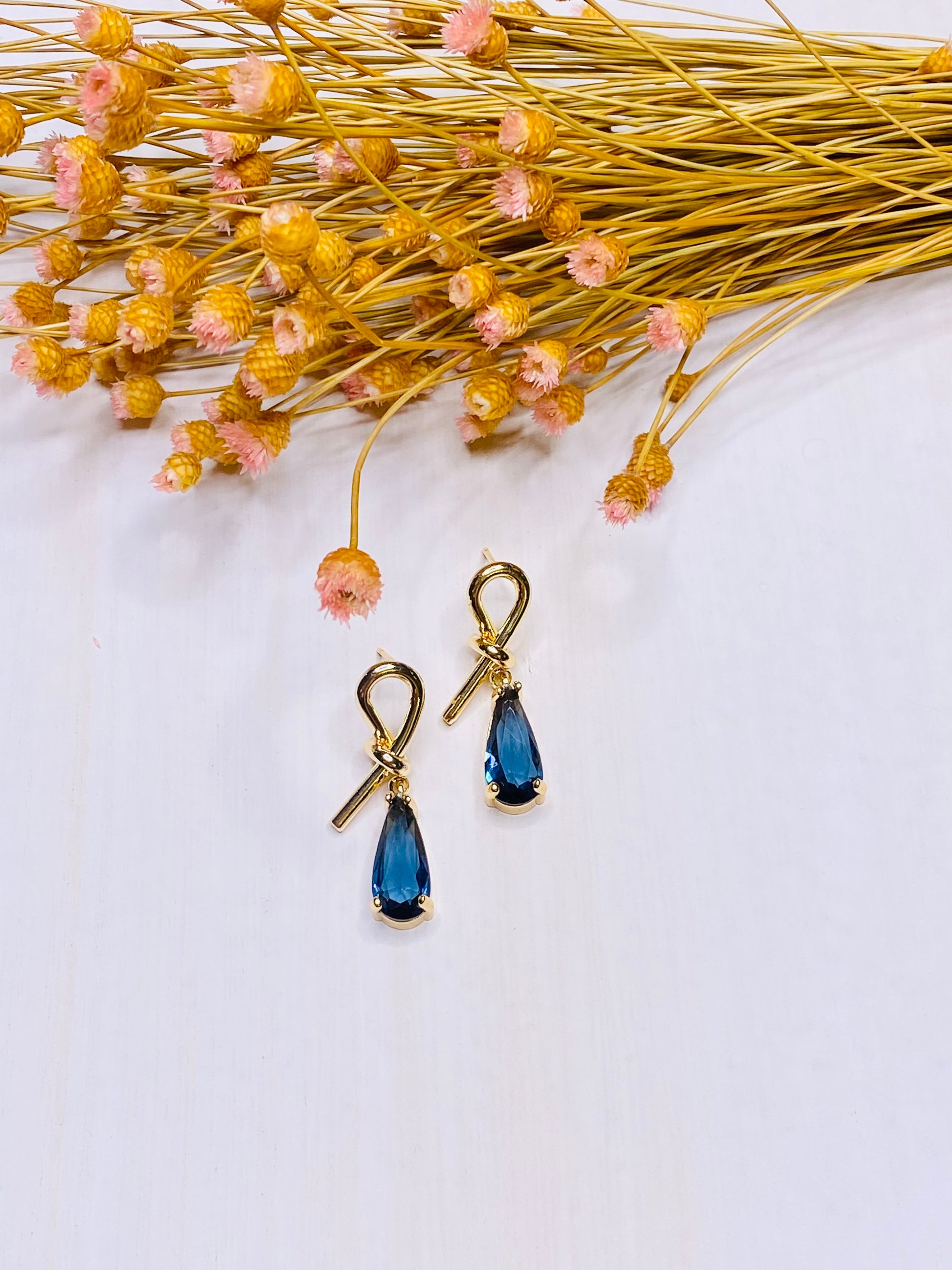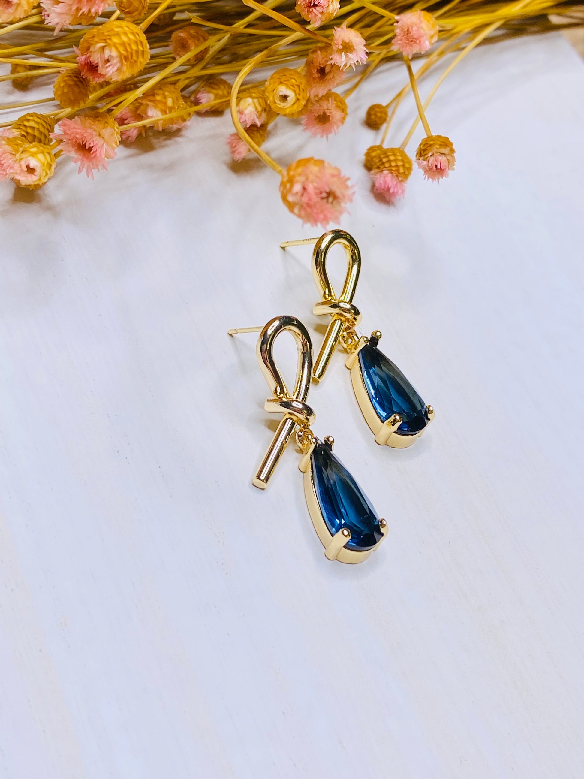 18k real gold plated studs, deep blue teardrop zircon gemstone pendant