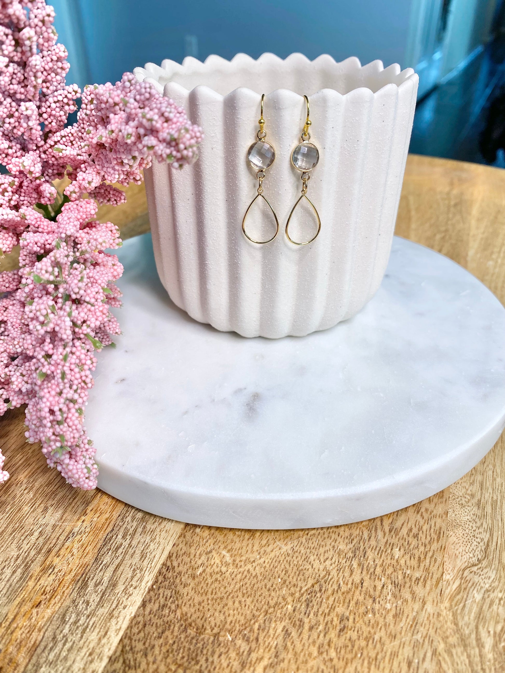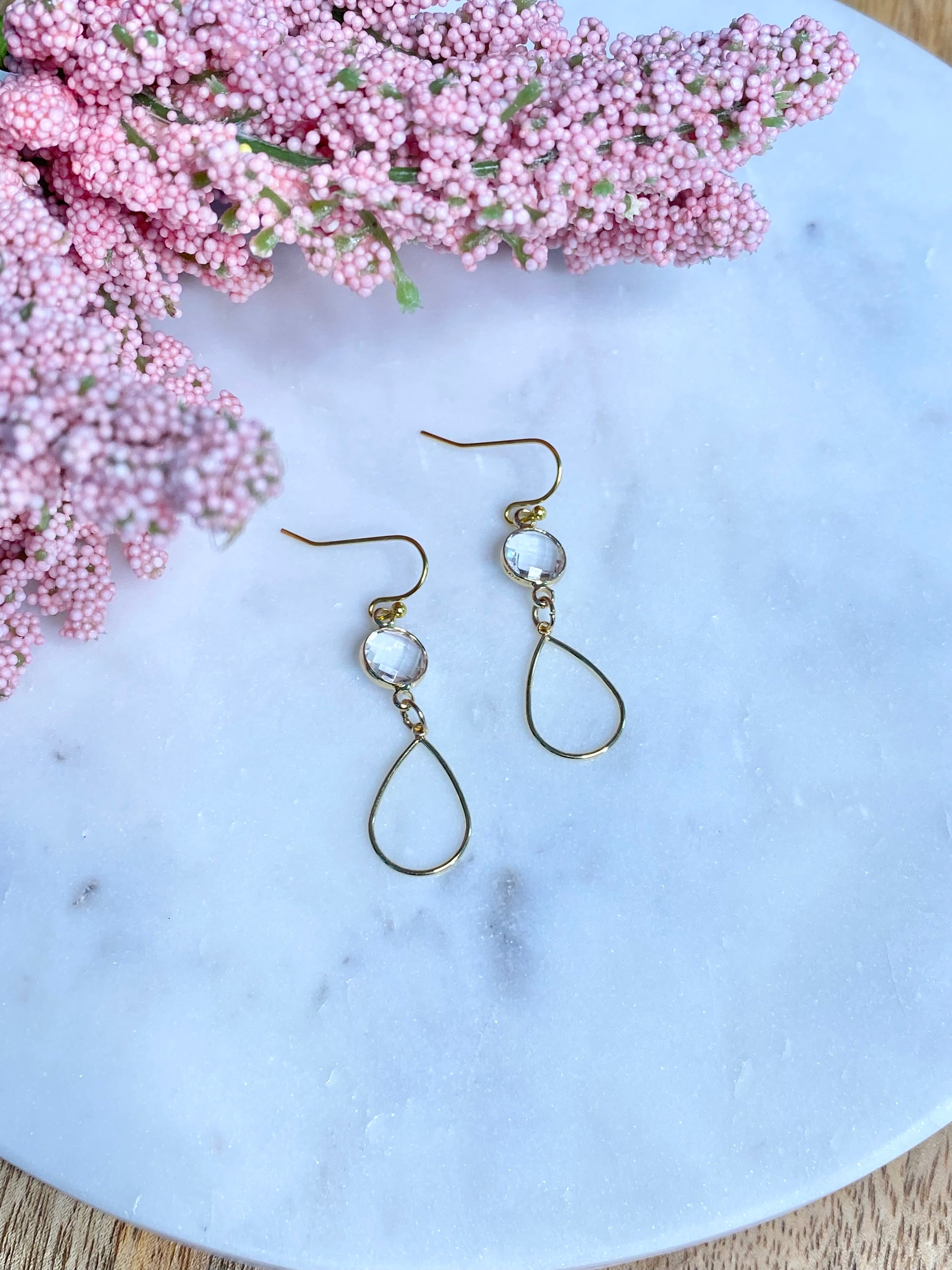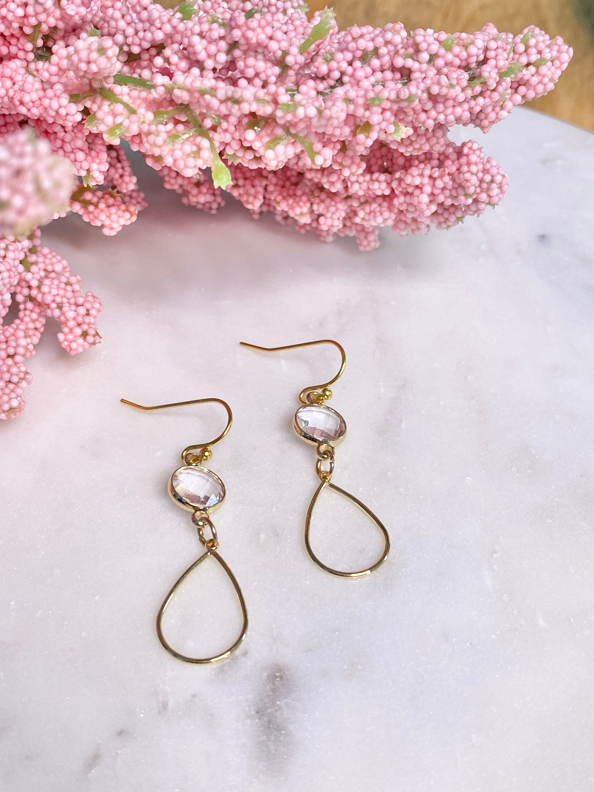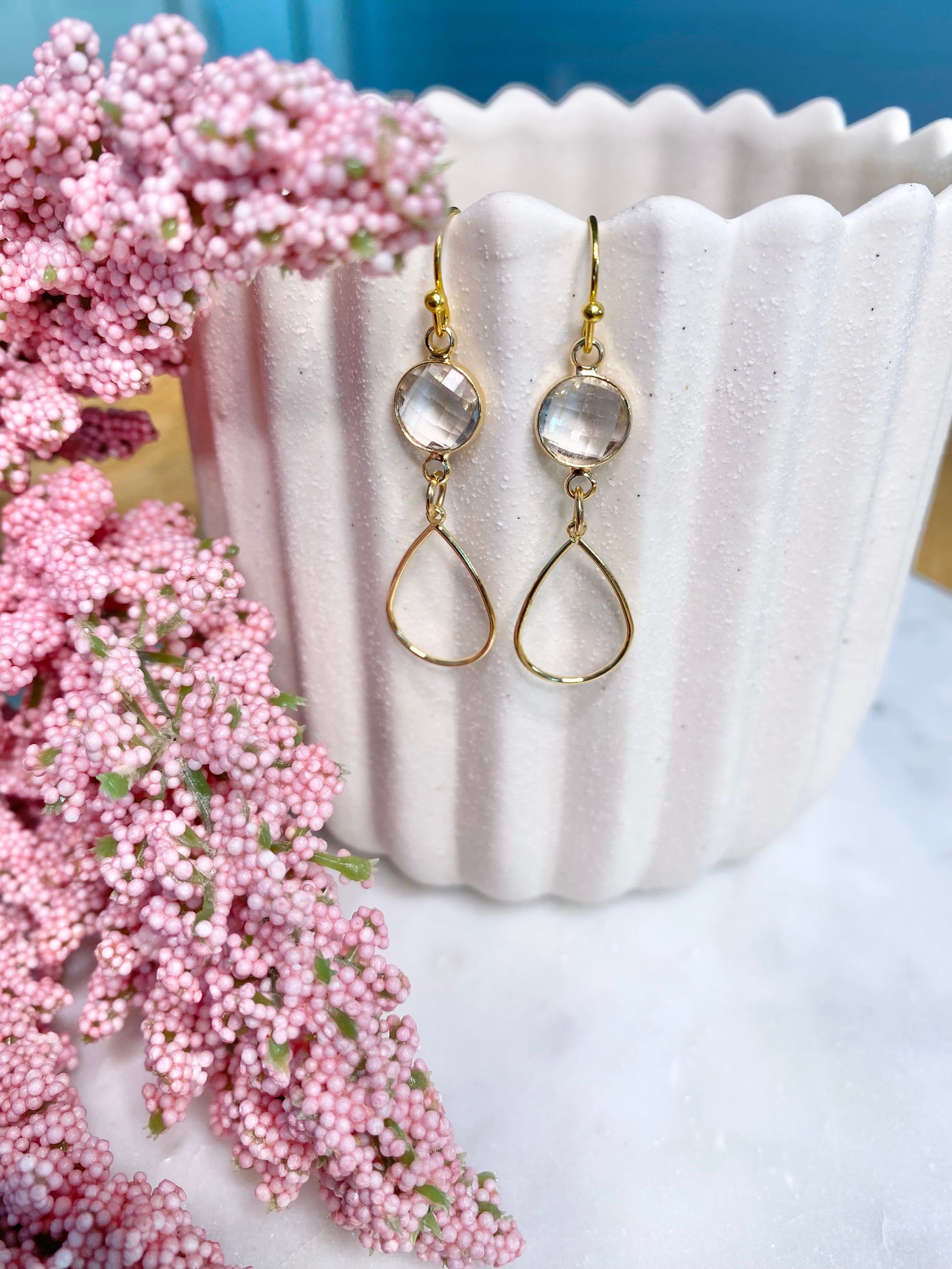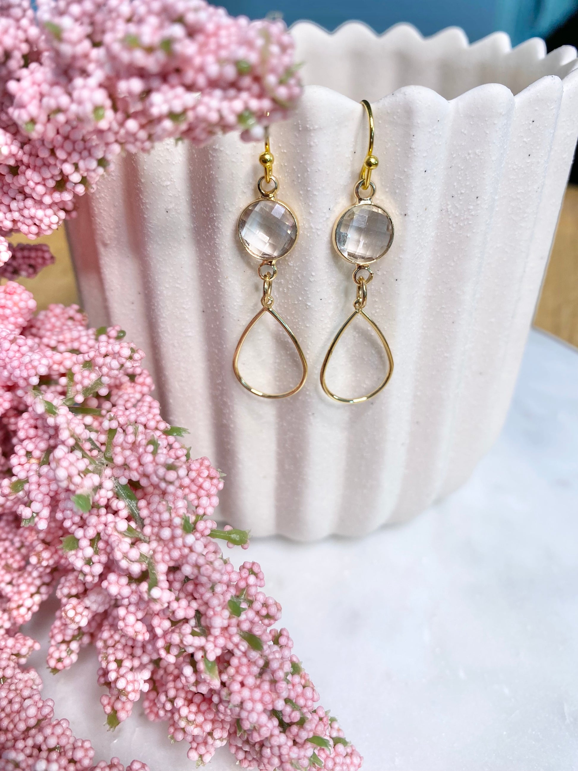 Clear crystal glass gemstone, real gold plated teardrop pendant
