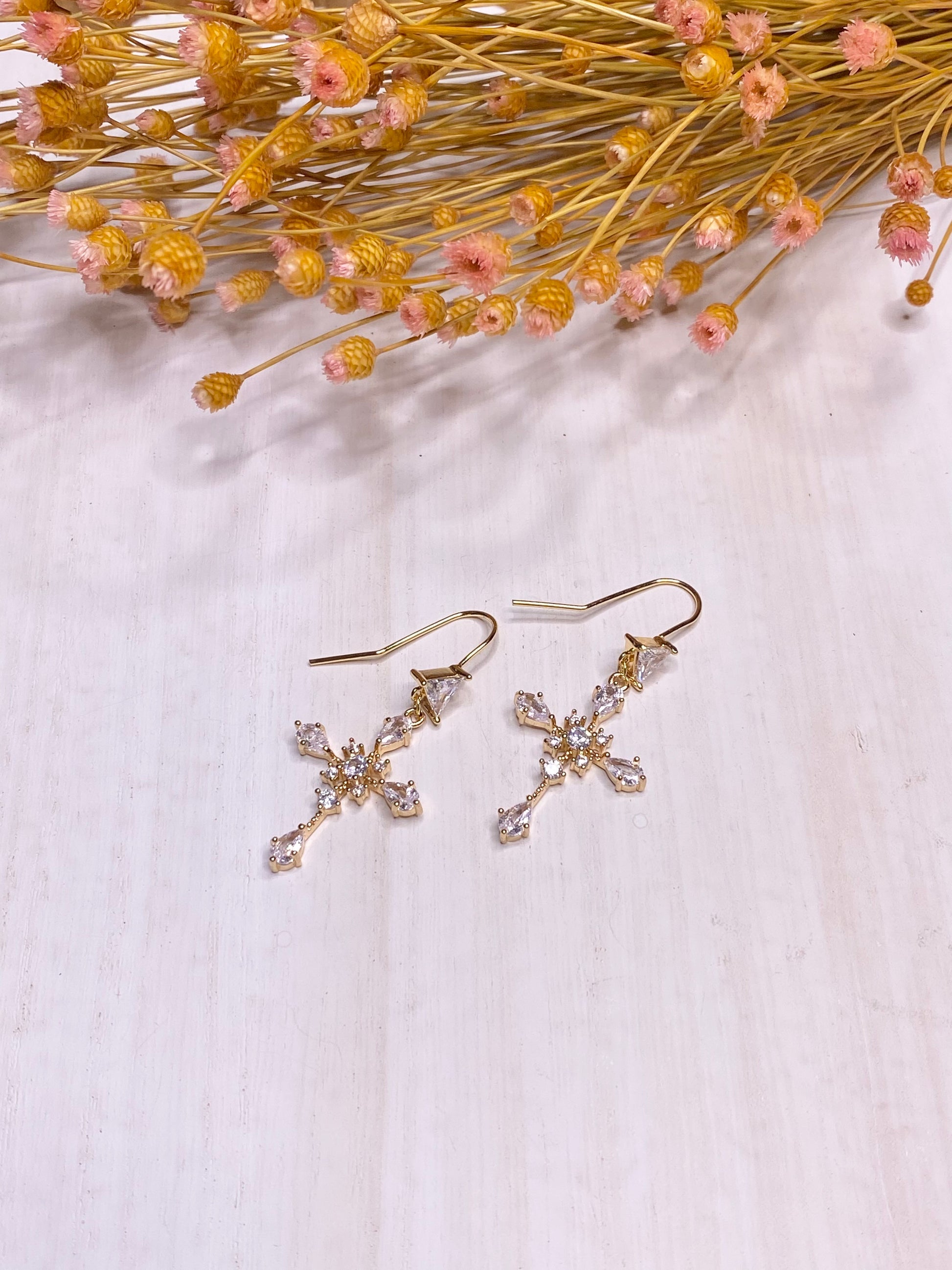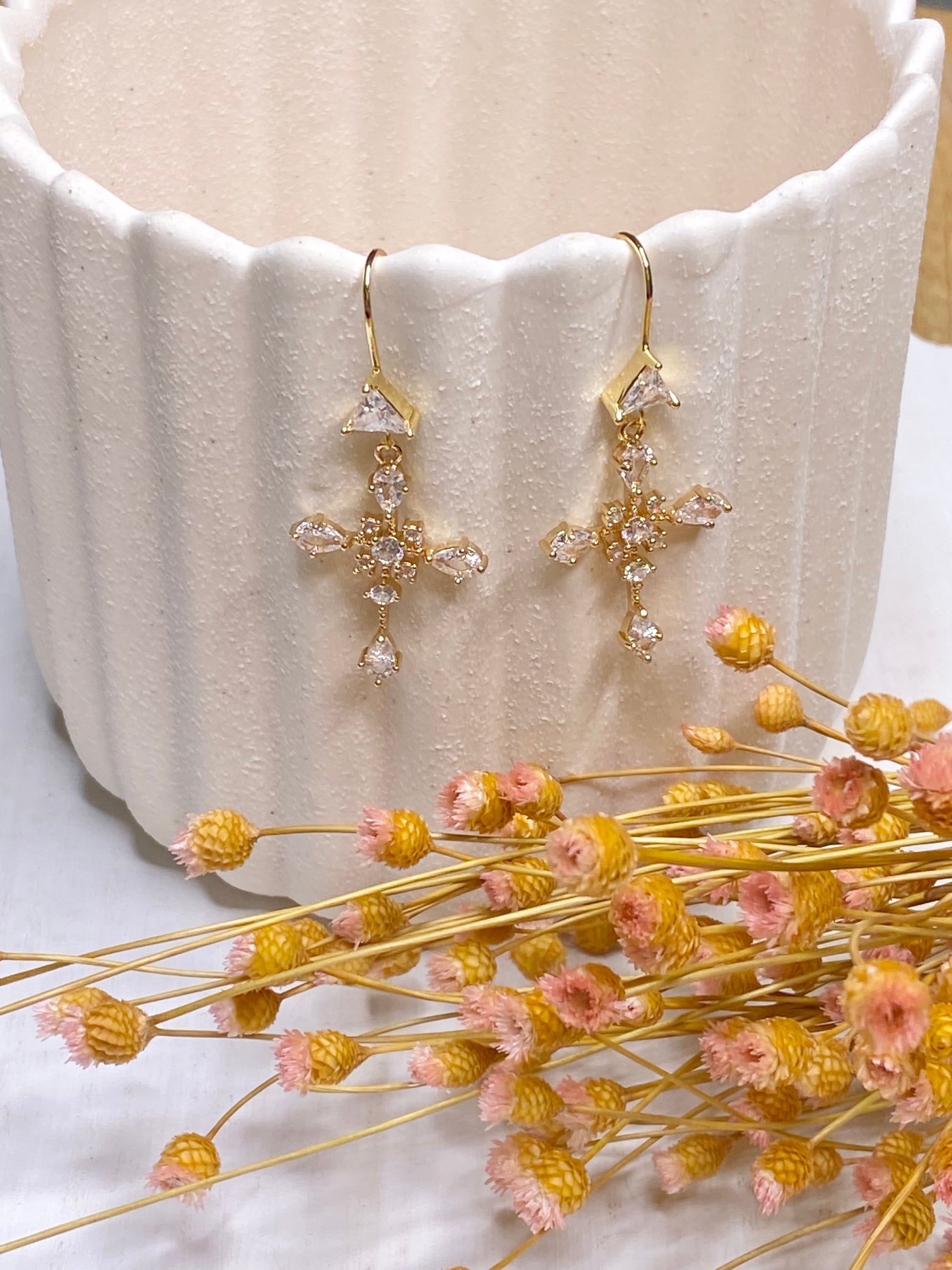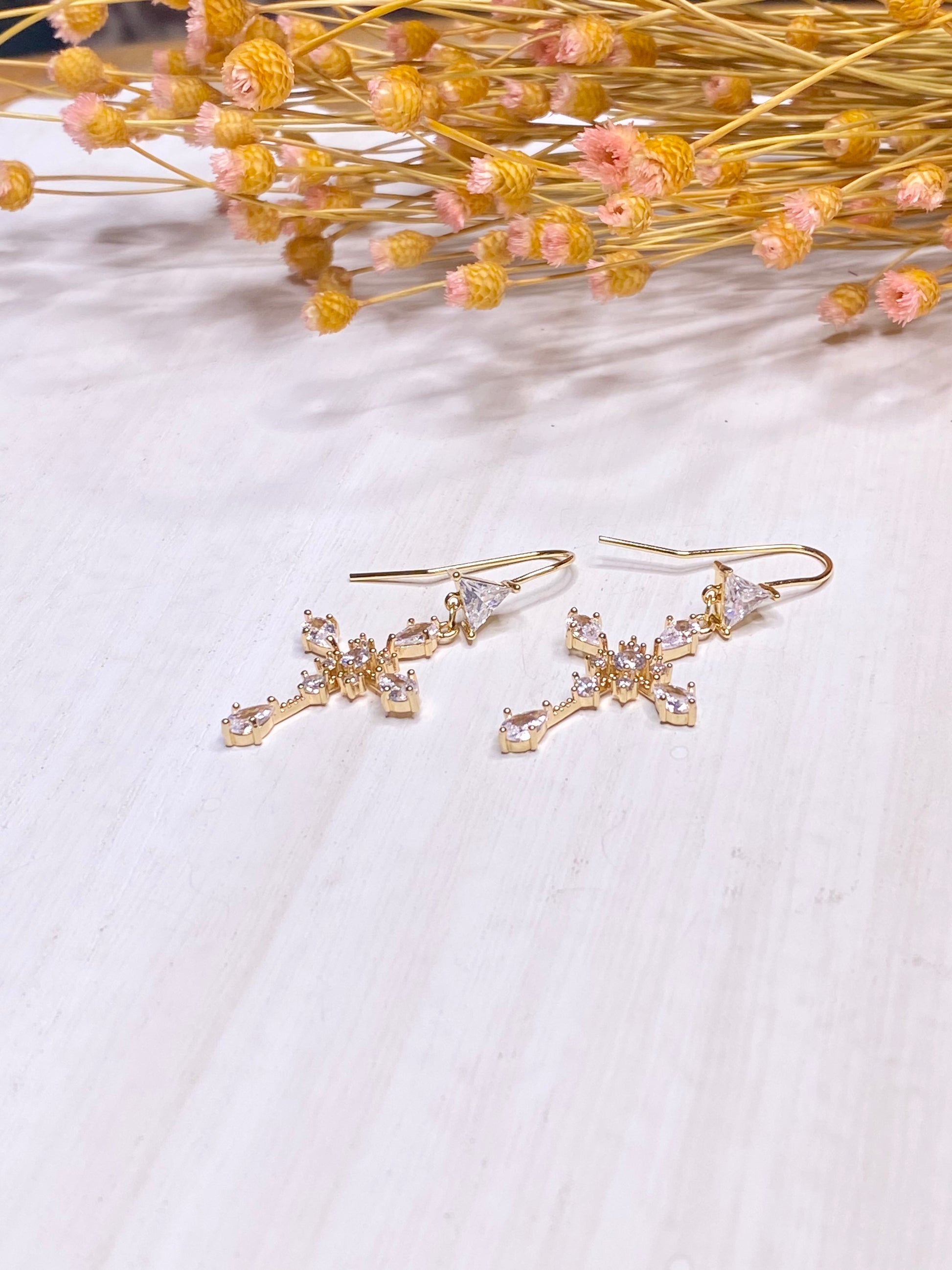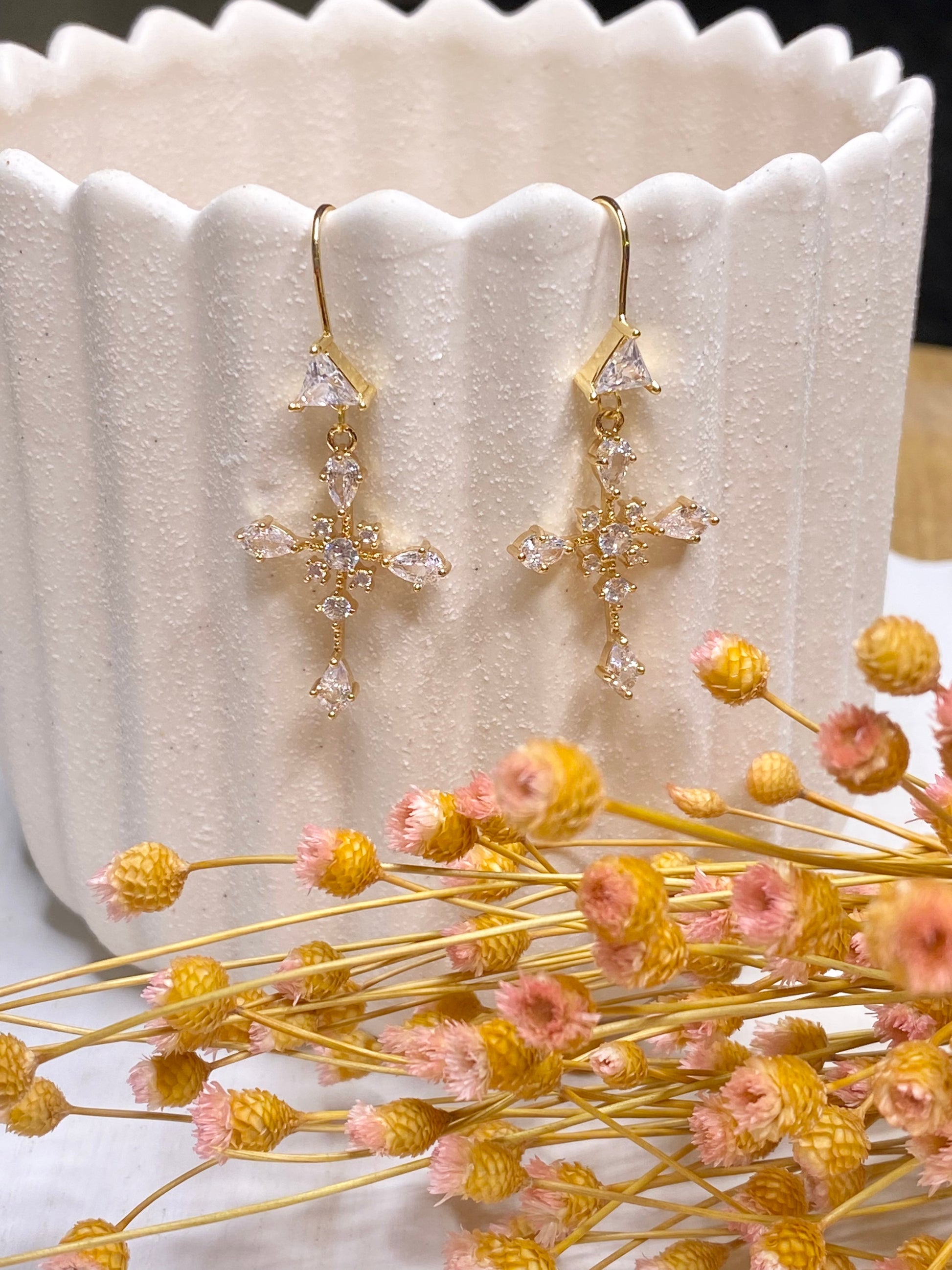 Elegant 14k gold plated zirconia dangle, delicate zirconia cross pendant