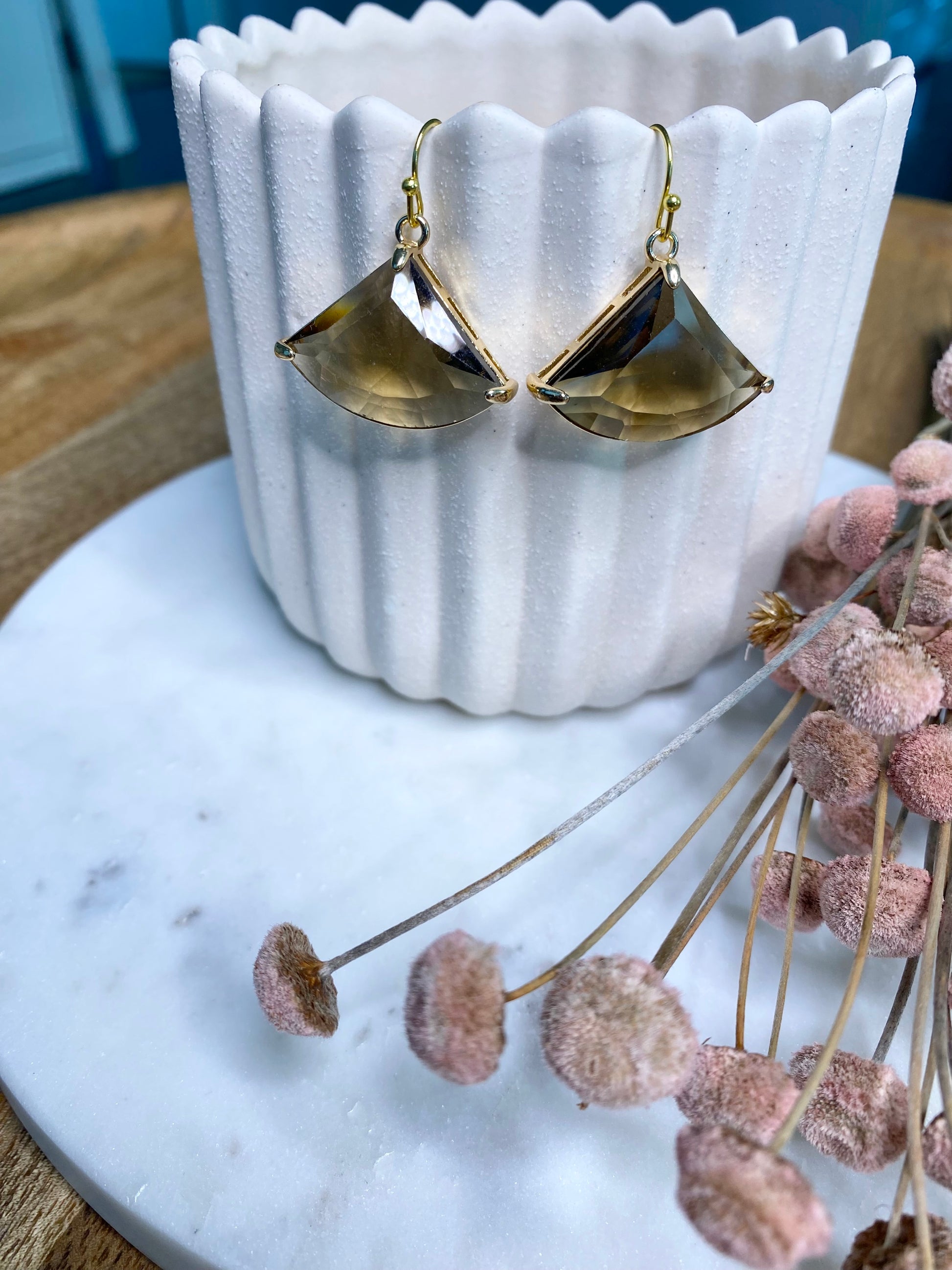 - Gemstone: Brown Crystal Glass Encased in Brass