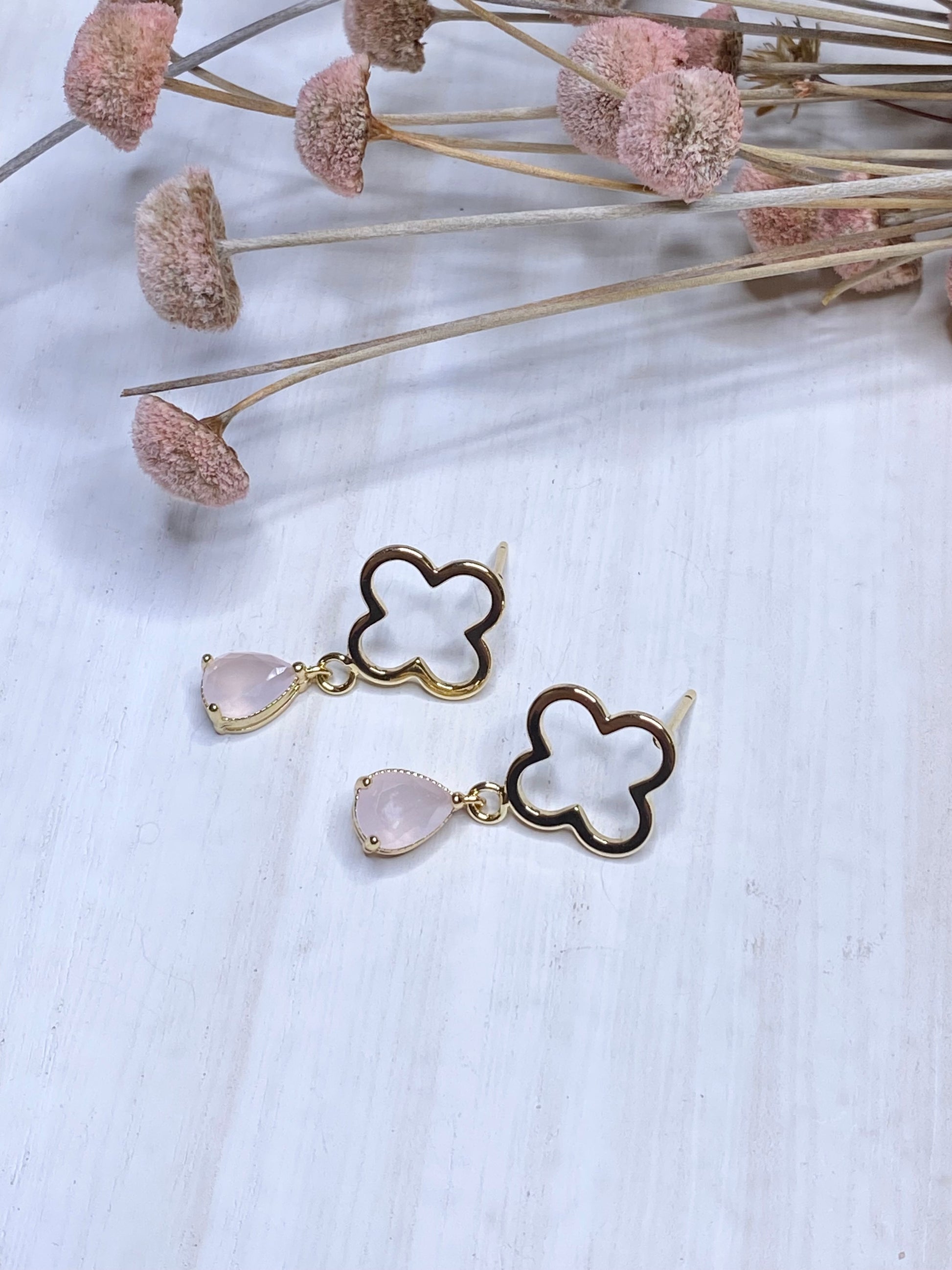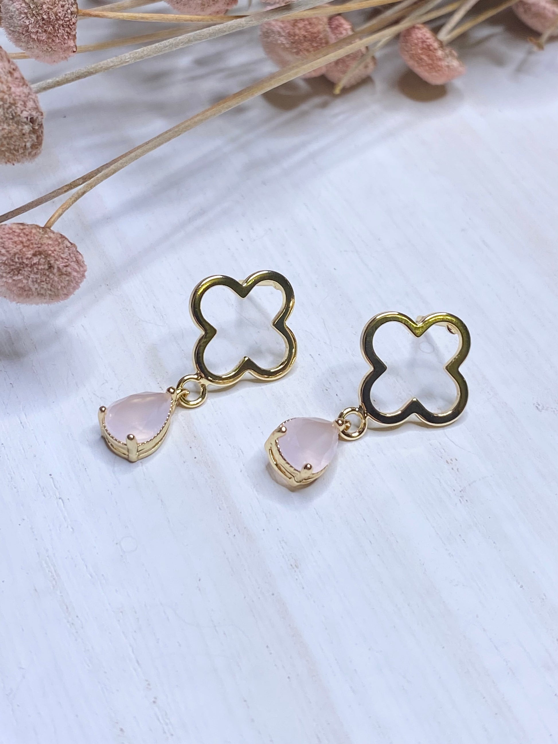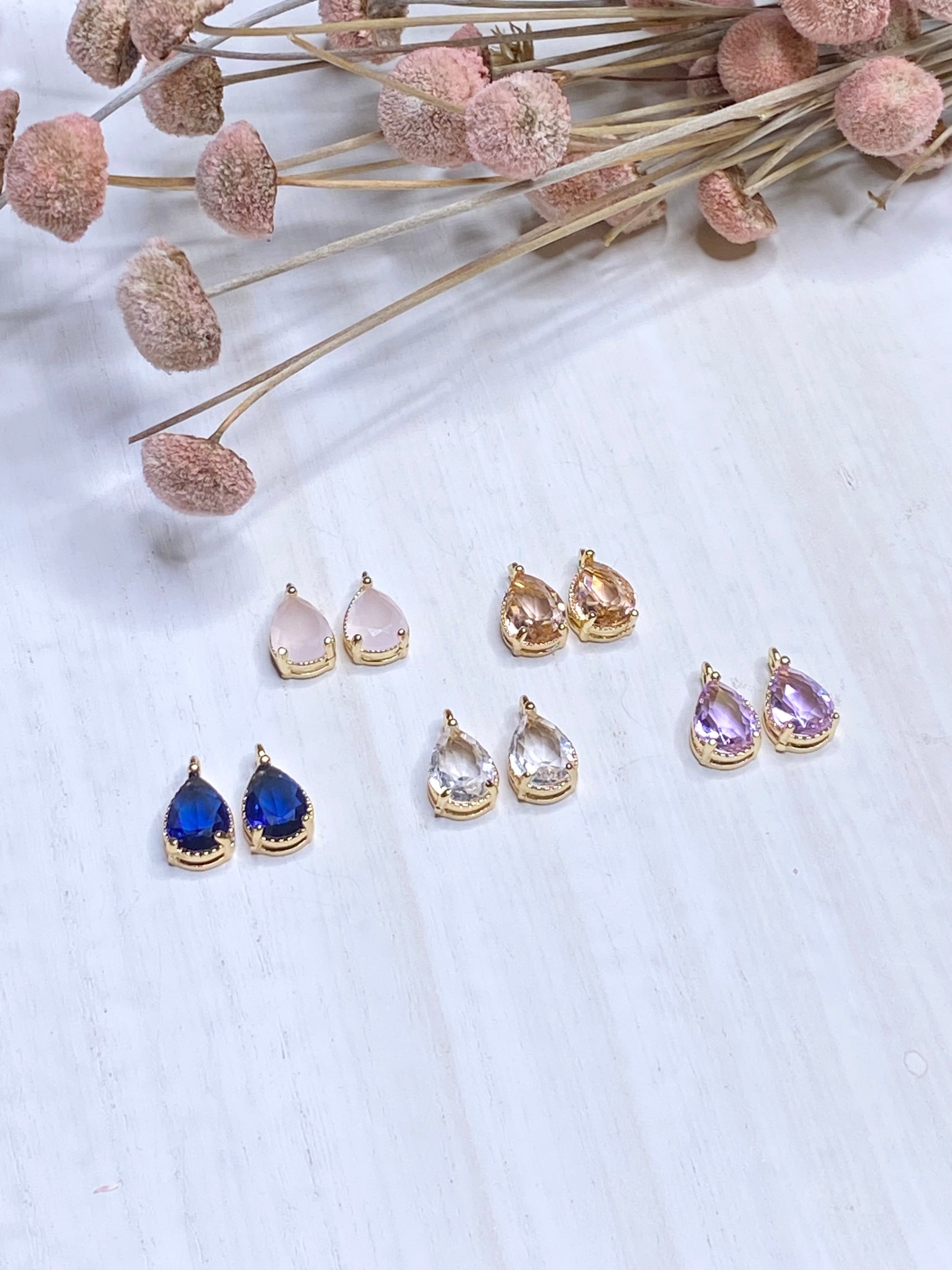 18k gold plated studs, dainty light pink crystal glass gemstone