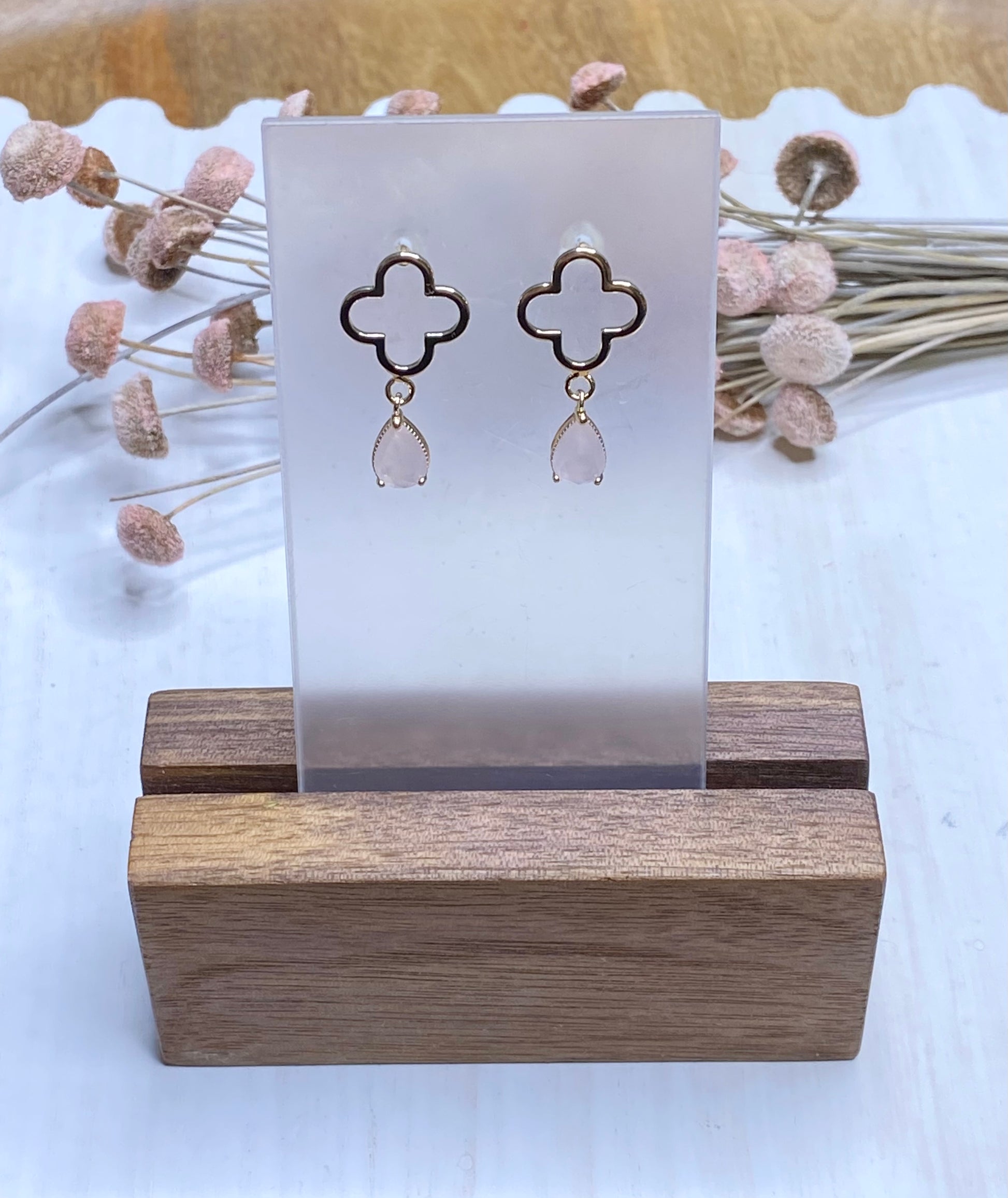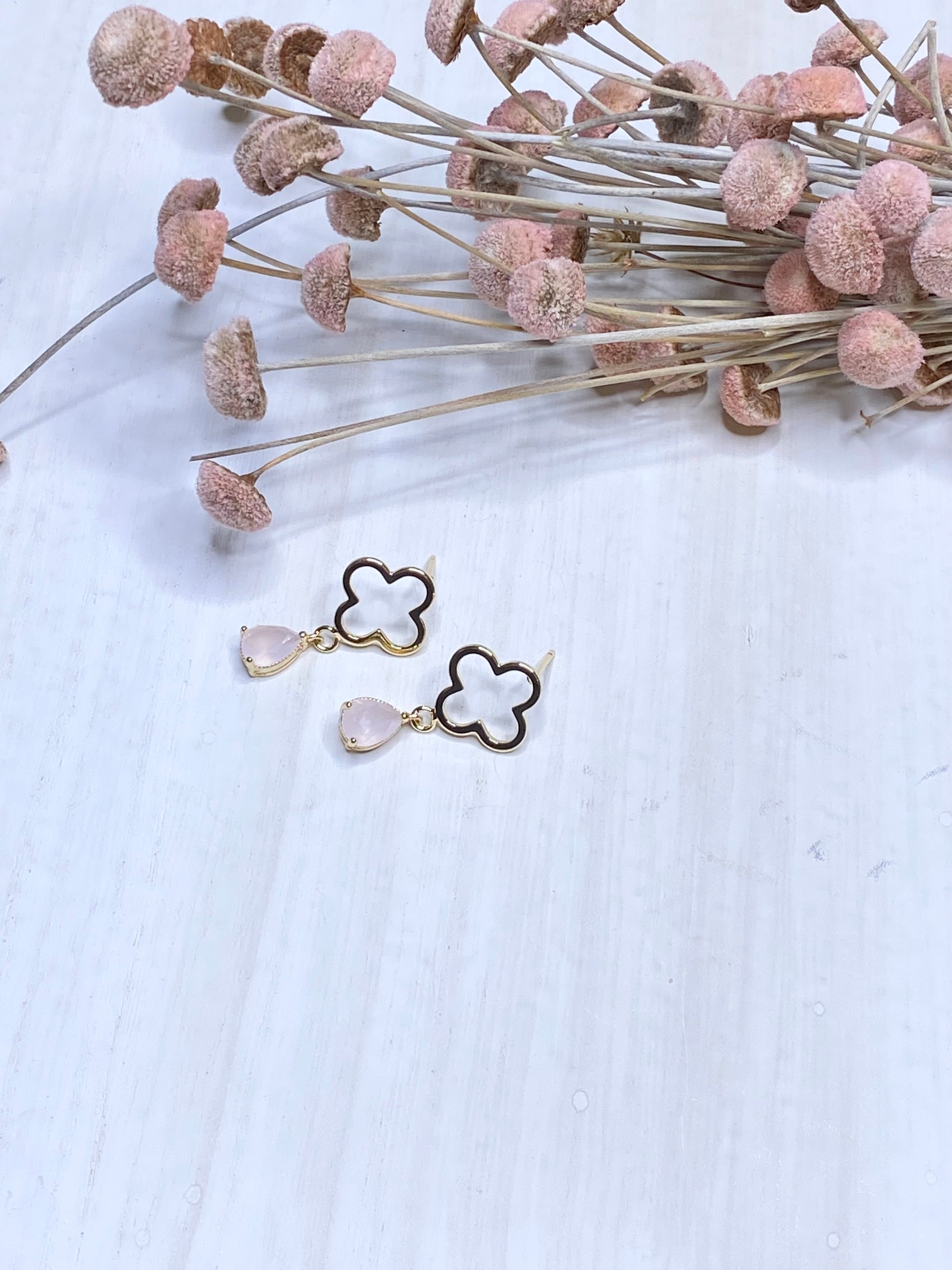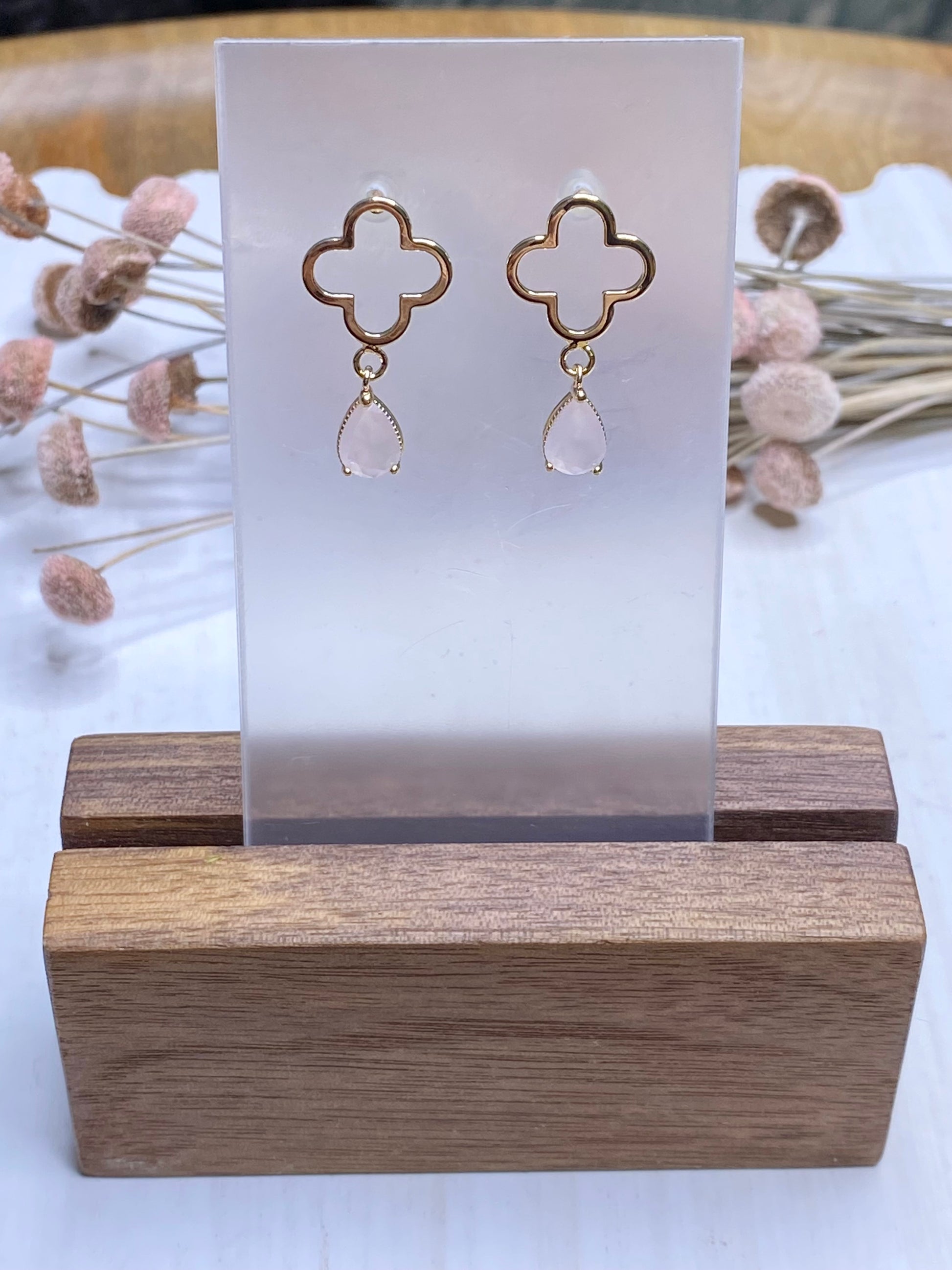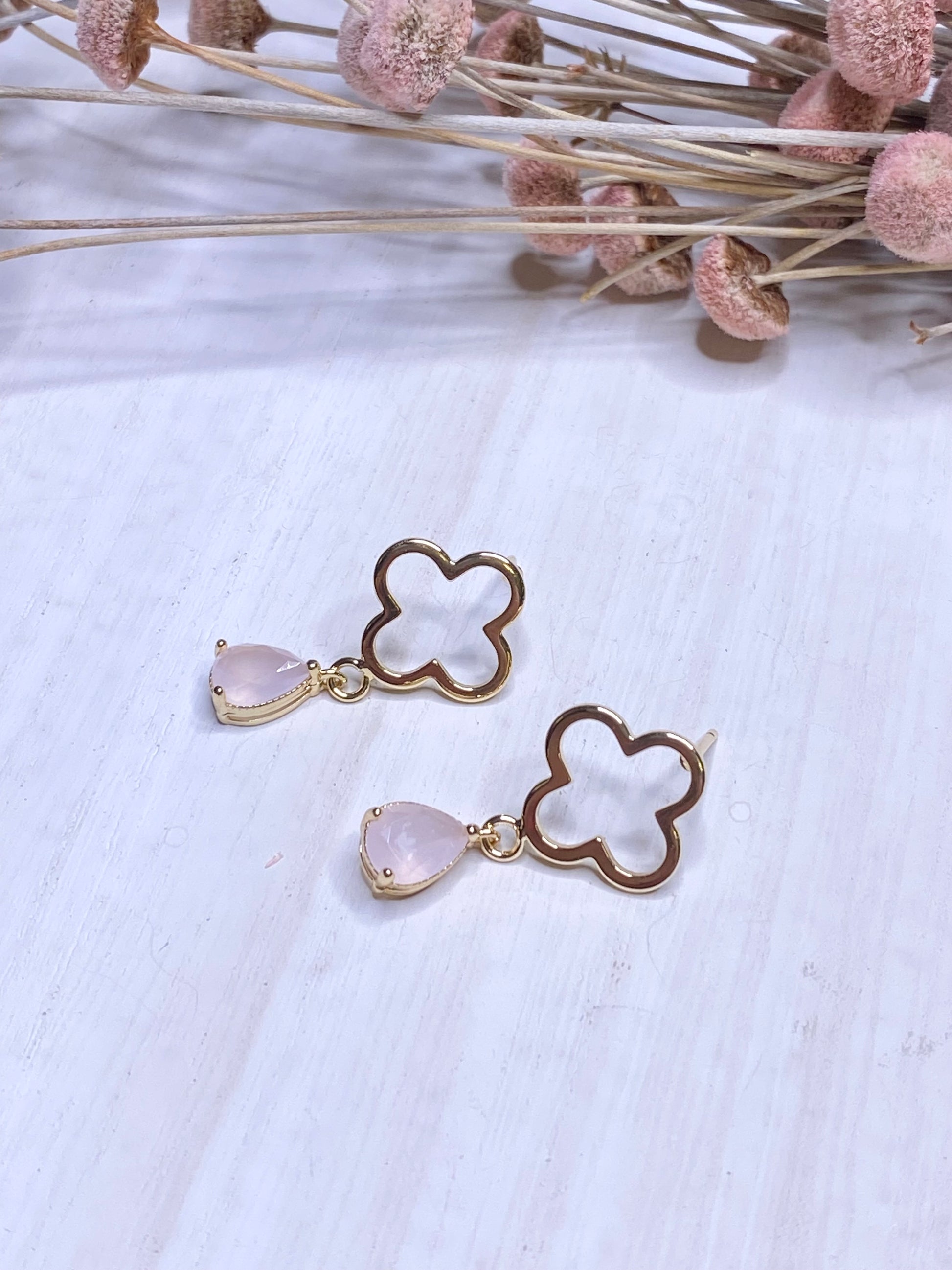 18k gold plated studs, dainty light pink crystal glass gemstone