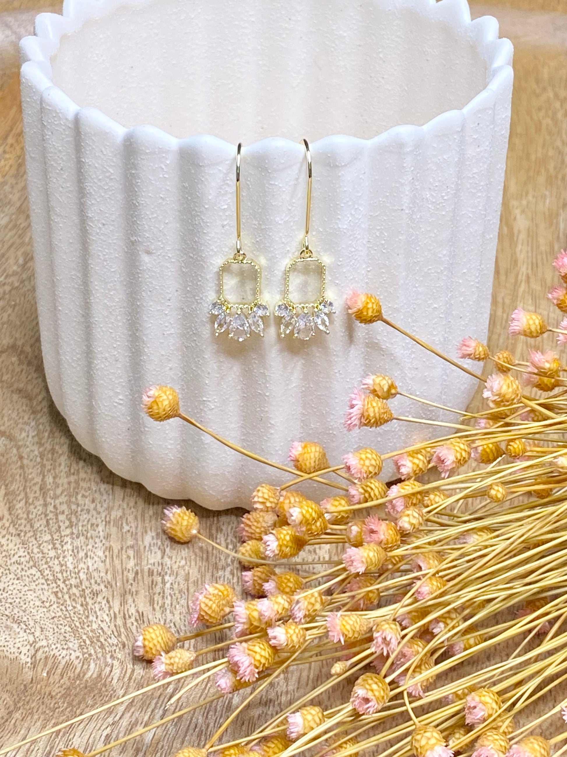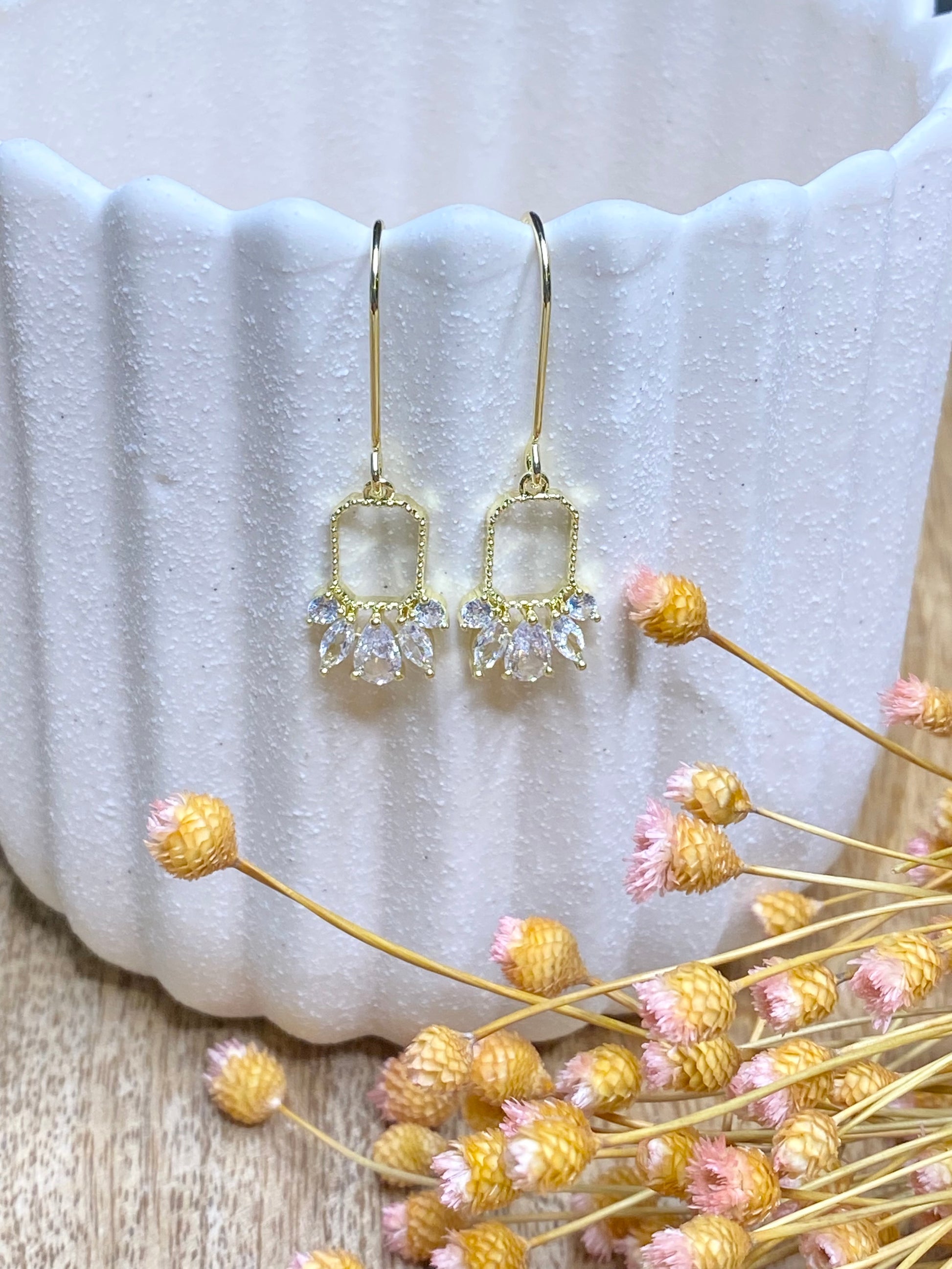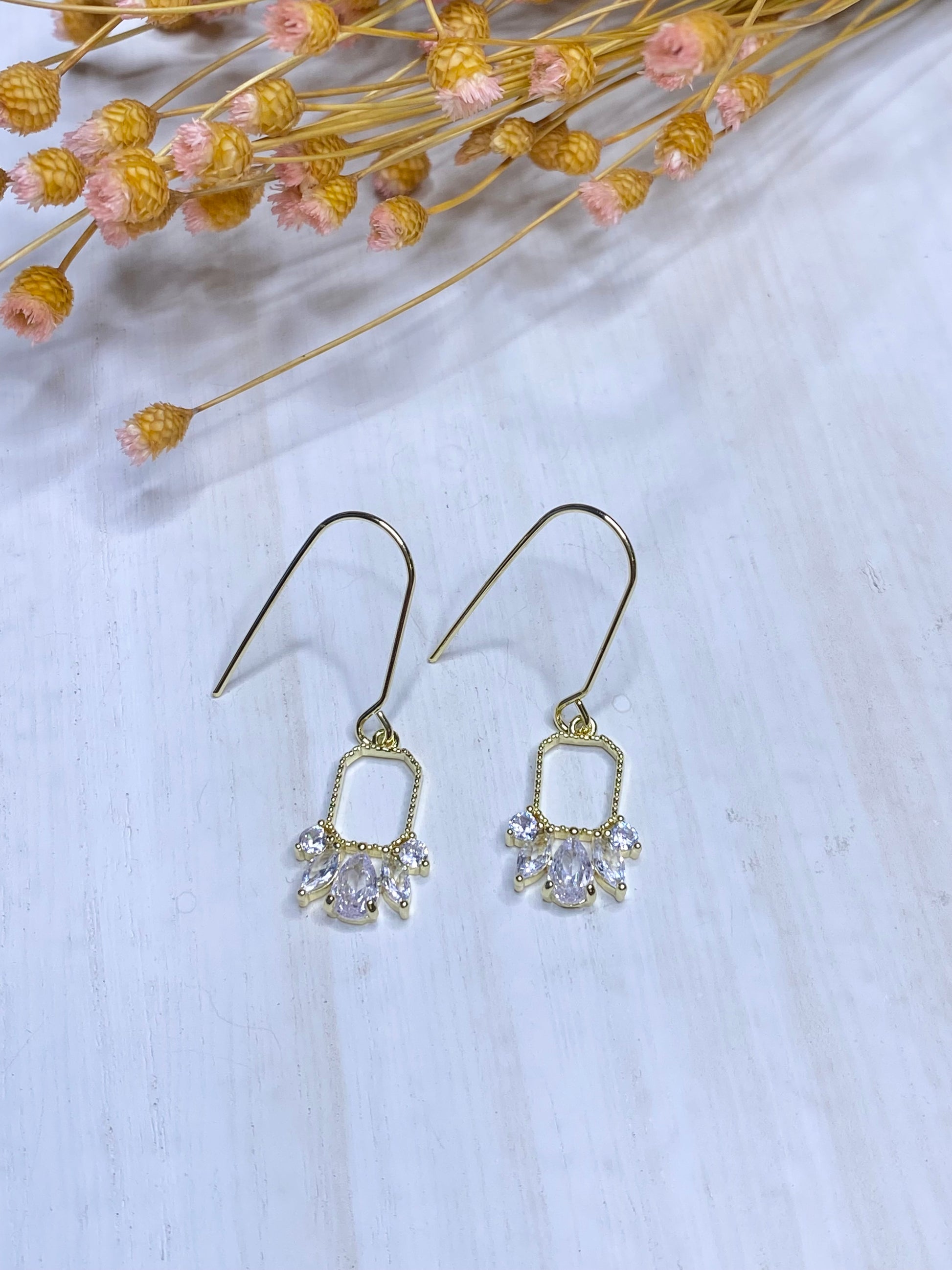 Dainty elegant 18k gold plated drop earring wire, gold plated zircon pendant.