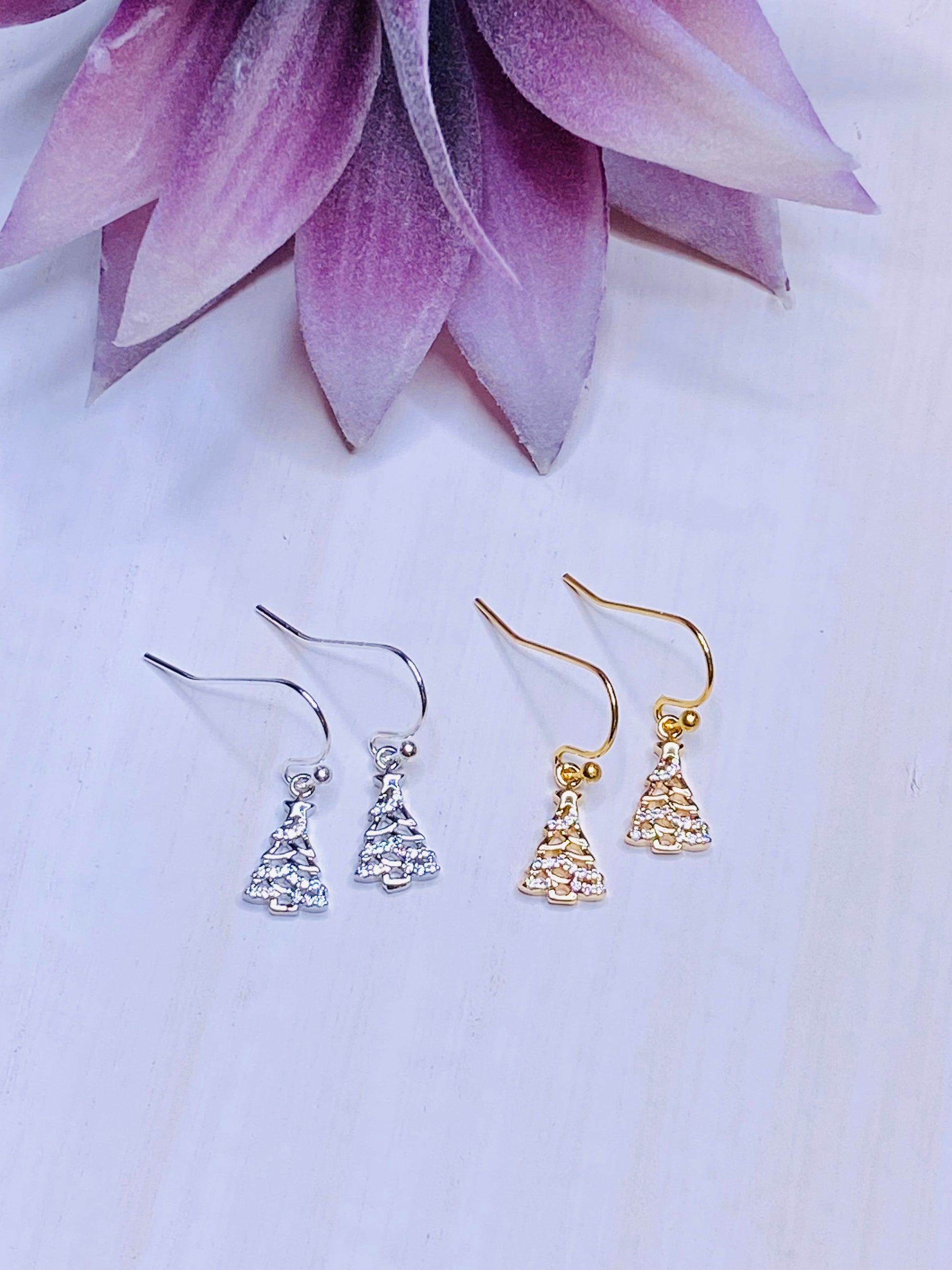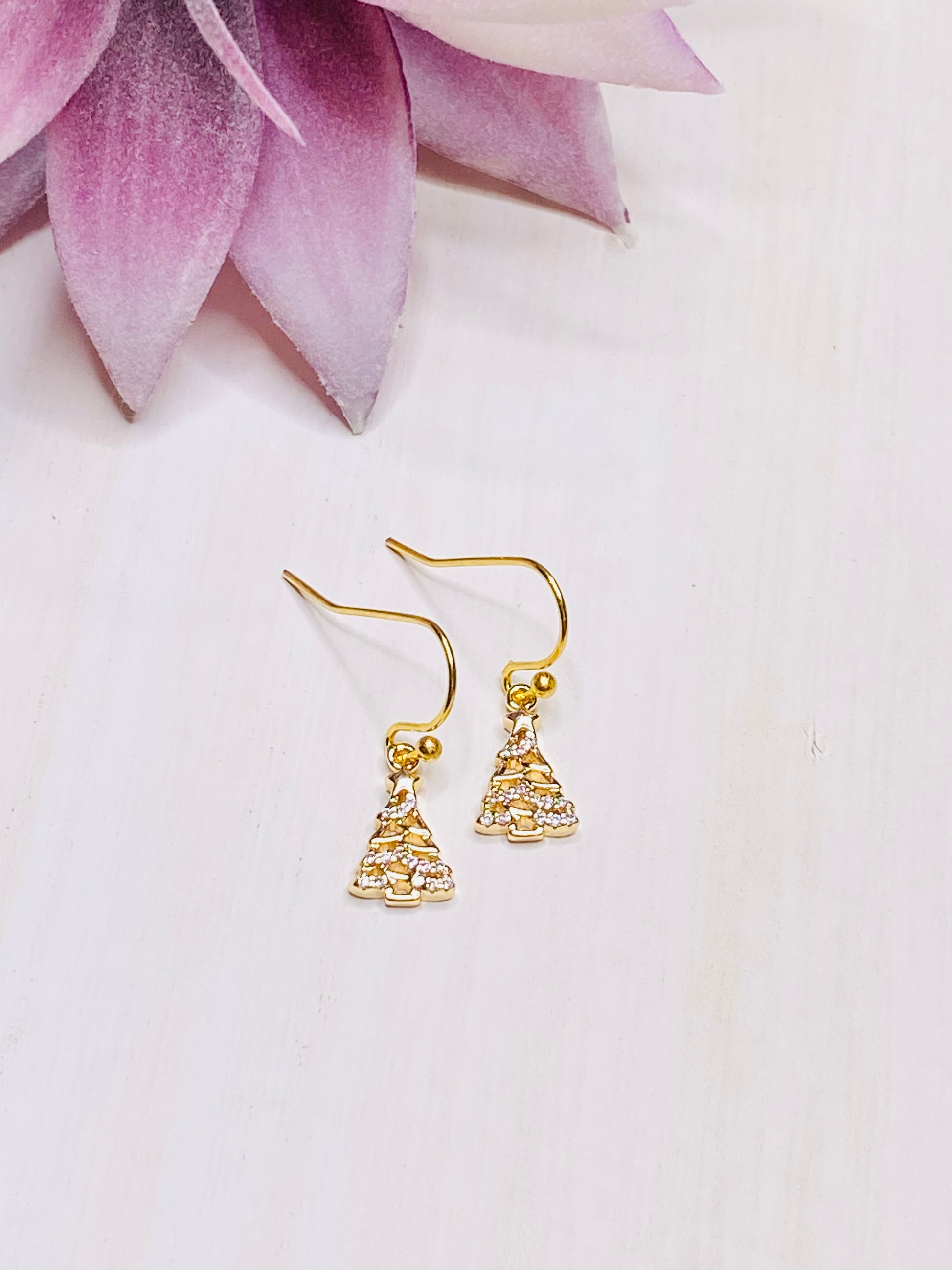 Real gold plated or platinum Christmas tree pendant with tiny zirconia lining